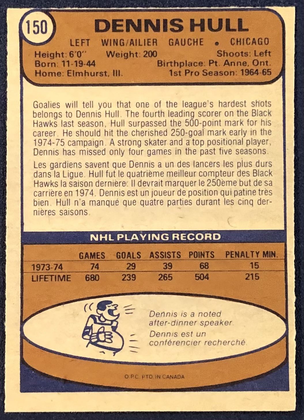 Lot 956 1974-75 O-PEE-CHEE DENNIS HULL