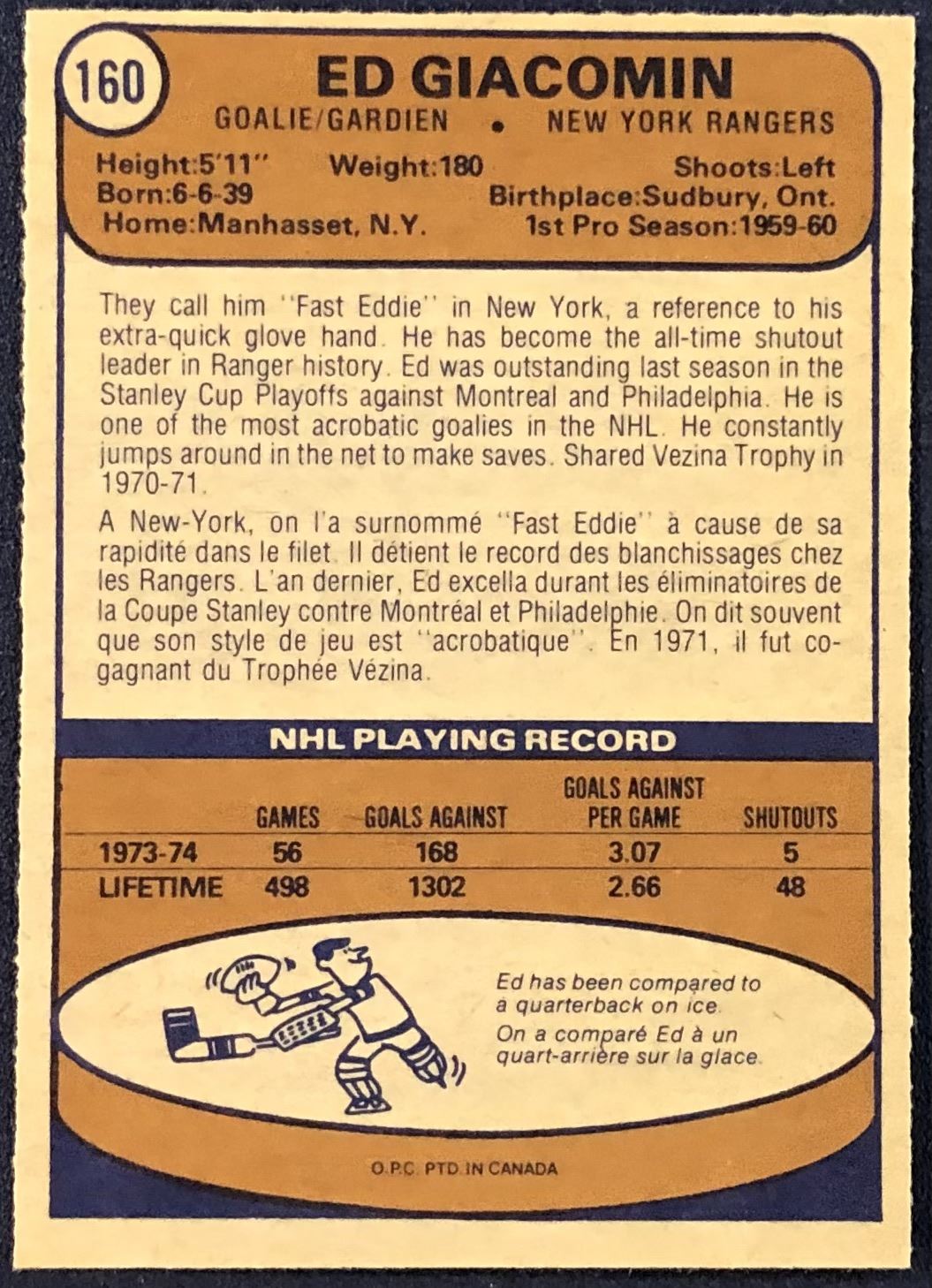 Lot 957 1974-75 O-PEE-CHEE EDDIE GIACOMIN (HOF)