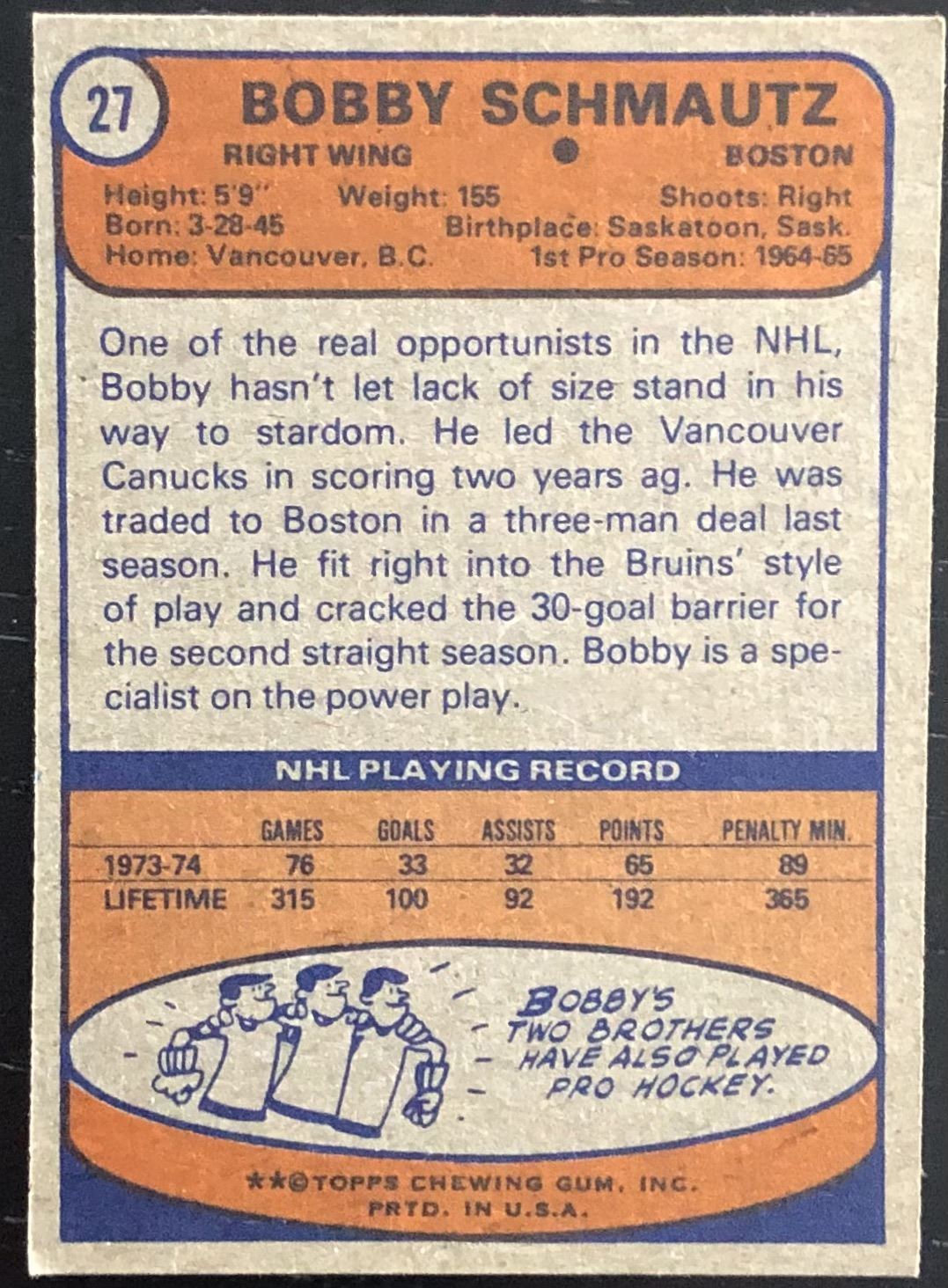 Lot 961 1974-75 TOPPS BOBBY SCHMAUTZ