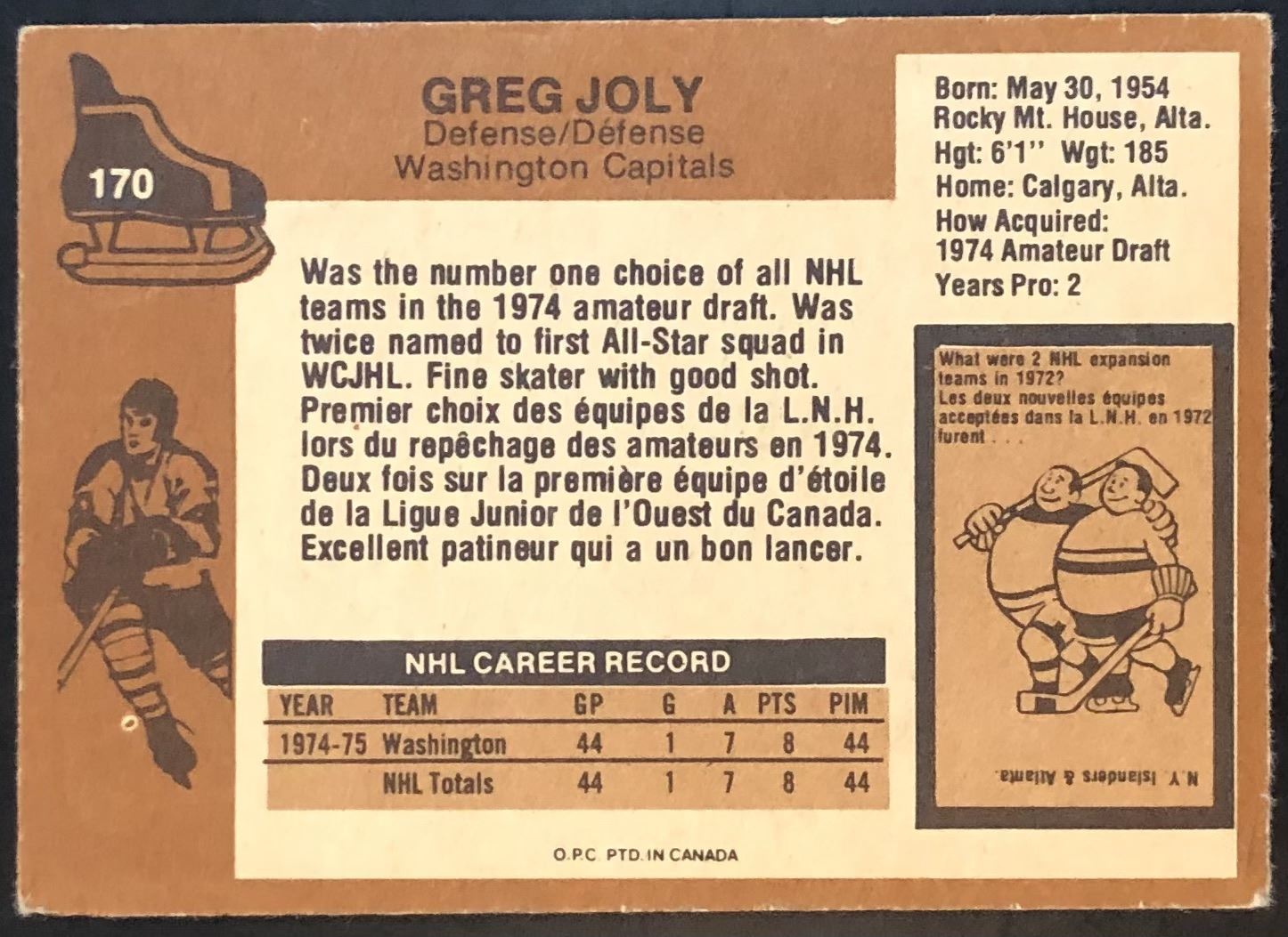 Lot 966 1975-76 NHL O-PEE-CHEE GREG JOLY ROOKIE CARD