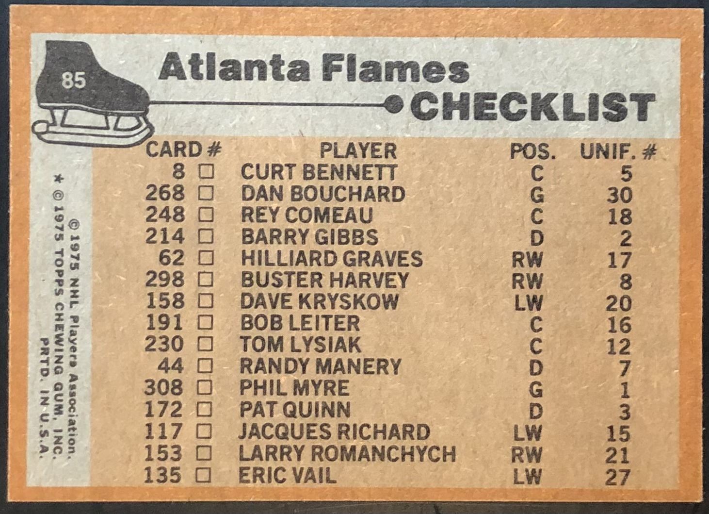 Lot 968 1975-76 NHL TOPPS ATLANTA FLAMES