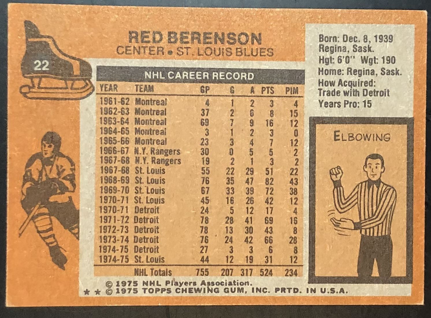 Lot 973 1975-76 NHL TOPPS RED BERENSON (HOF)