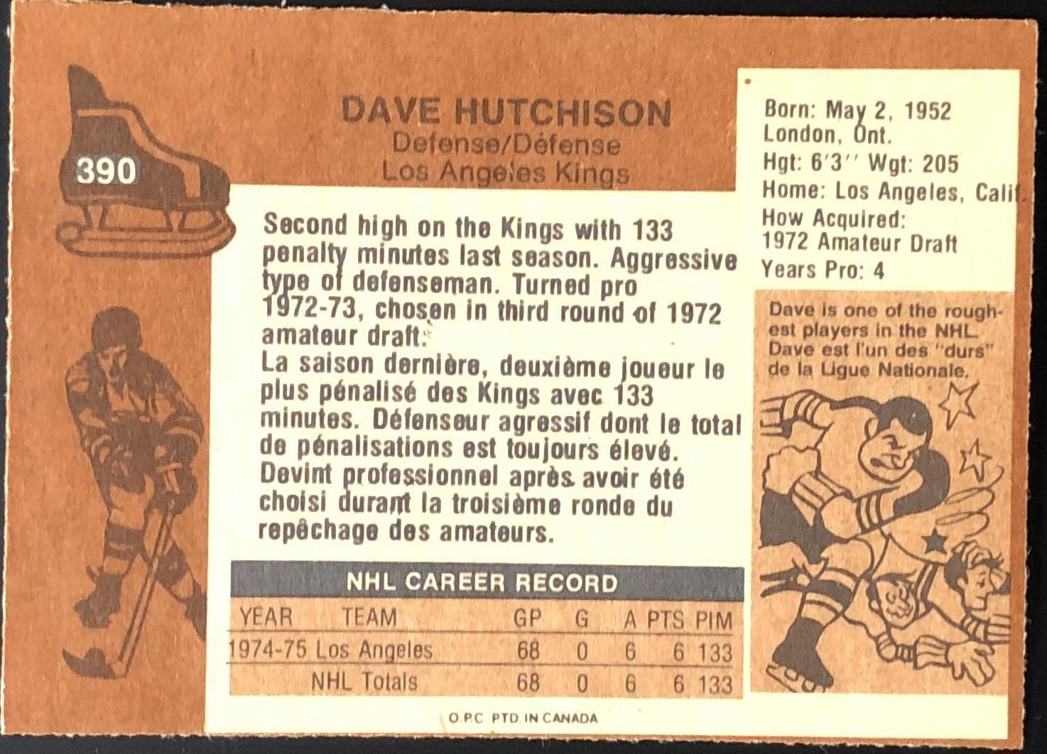 Lot 976 1975-76 O-PEE-CHEE DAVE HUTCHISON ROOKIE CARD