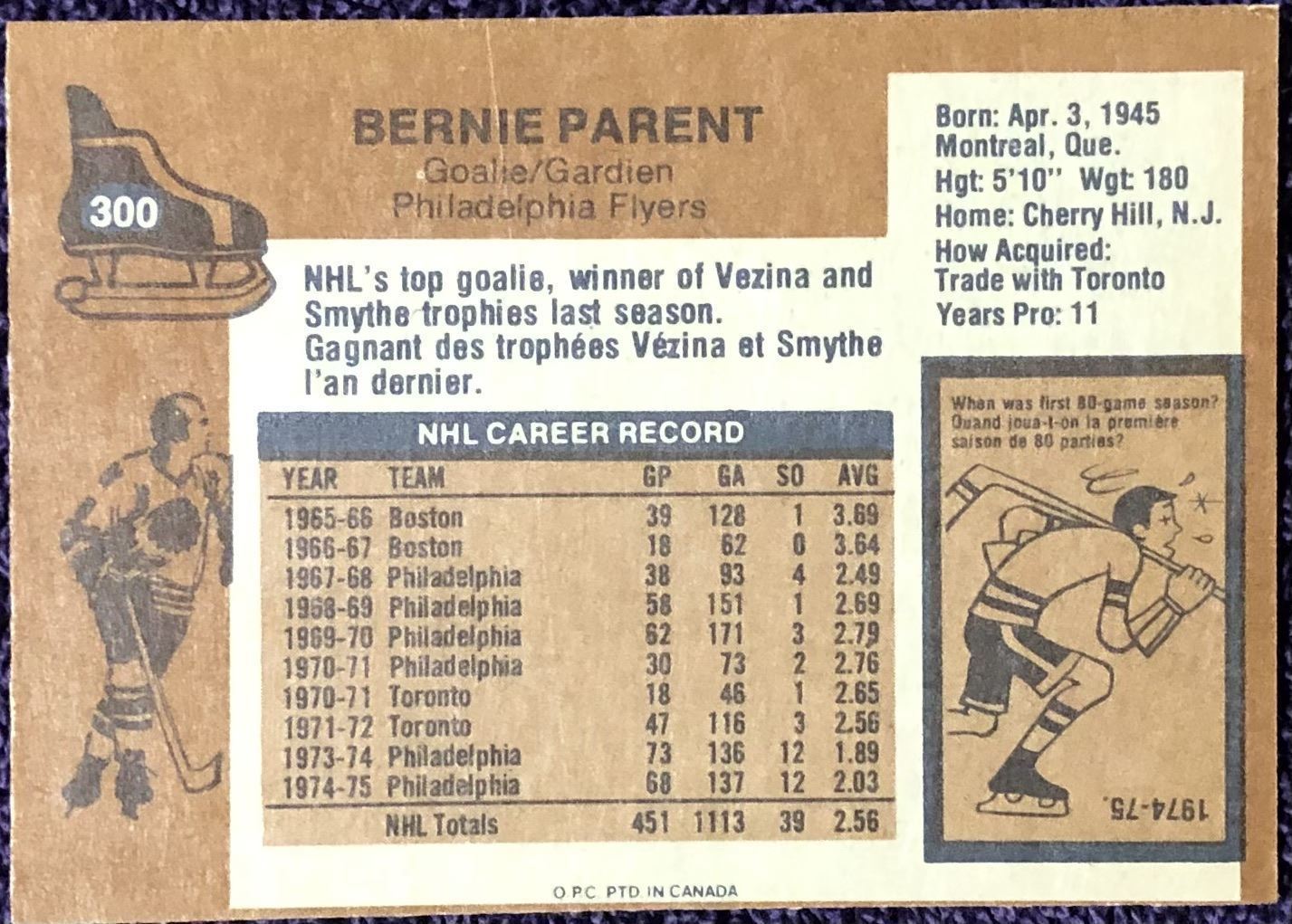 Lot 978 1975-76 O-PEE-CHEE HOCKEY BERNIE PARENT (HOF)
