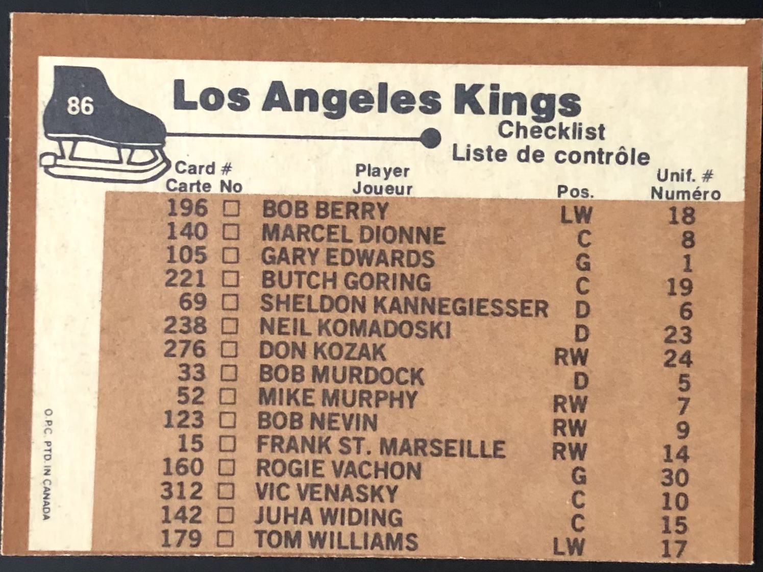 Lot 979 1975-76 O-PEE-CHEE LOS ANGELES KINGS
