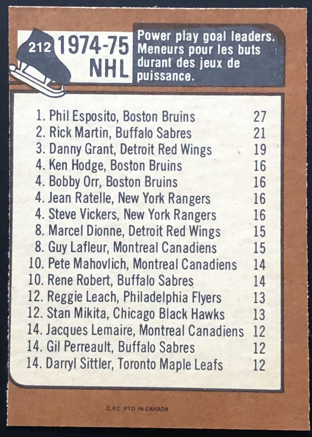 Lot 982 1975-76 O-PEE-CHEE PHIL ESPOSITO (HOF)