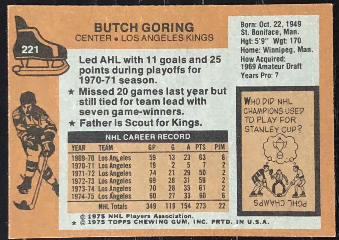 Lot 986 1975-76 TOPPS NHL BUTCH GORING