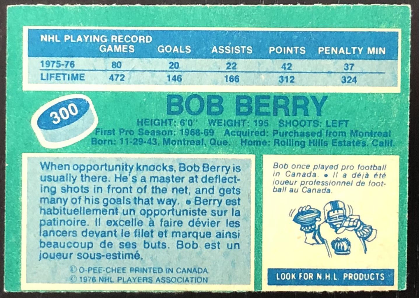 Lot 991 1976-77 O-PEE-CHEE BOB BERRY