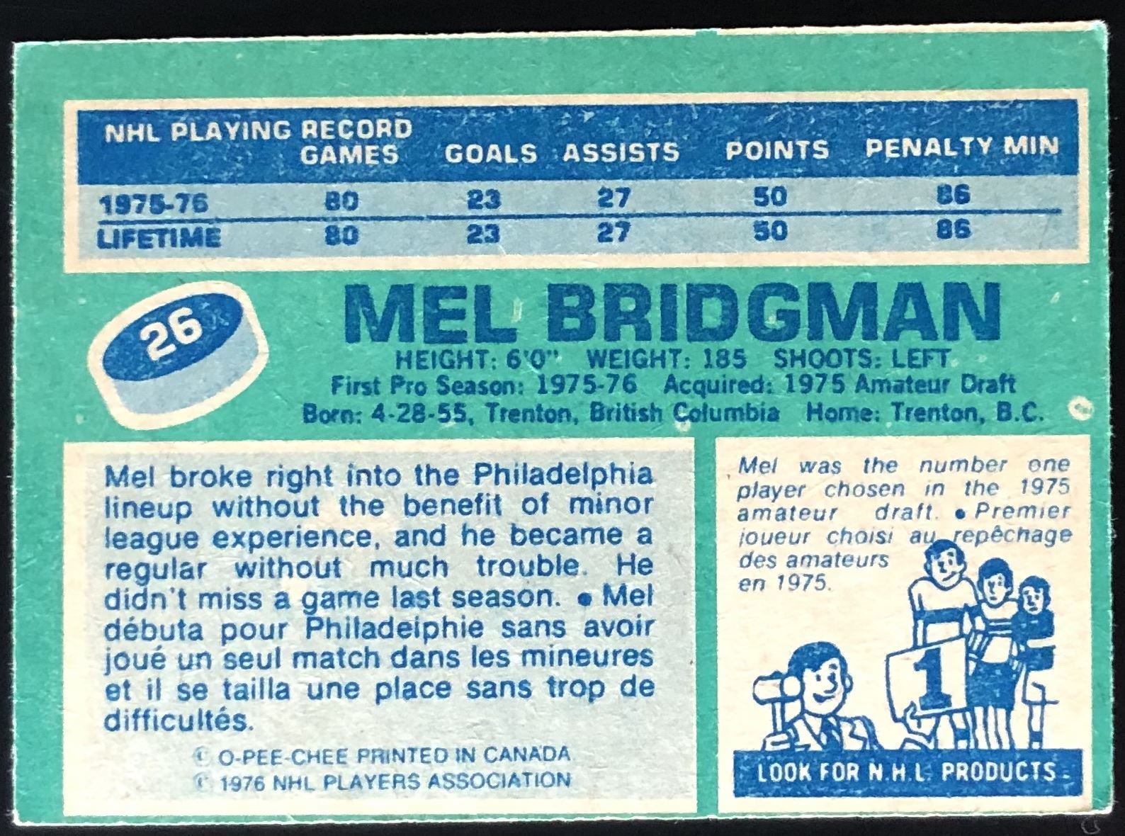 Lot 993 1976-77 O-PEE-CHEE MEL BRIDGMAN ROOKIE CARD