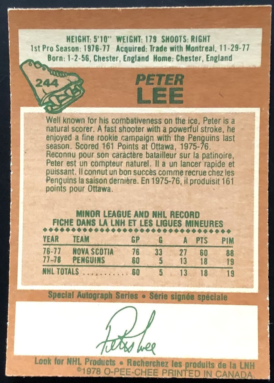 Lot 1002 1978-79 O-PEE-CHEE PETER LEE ROOKIE CARD