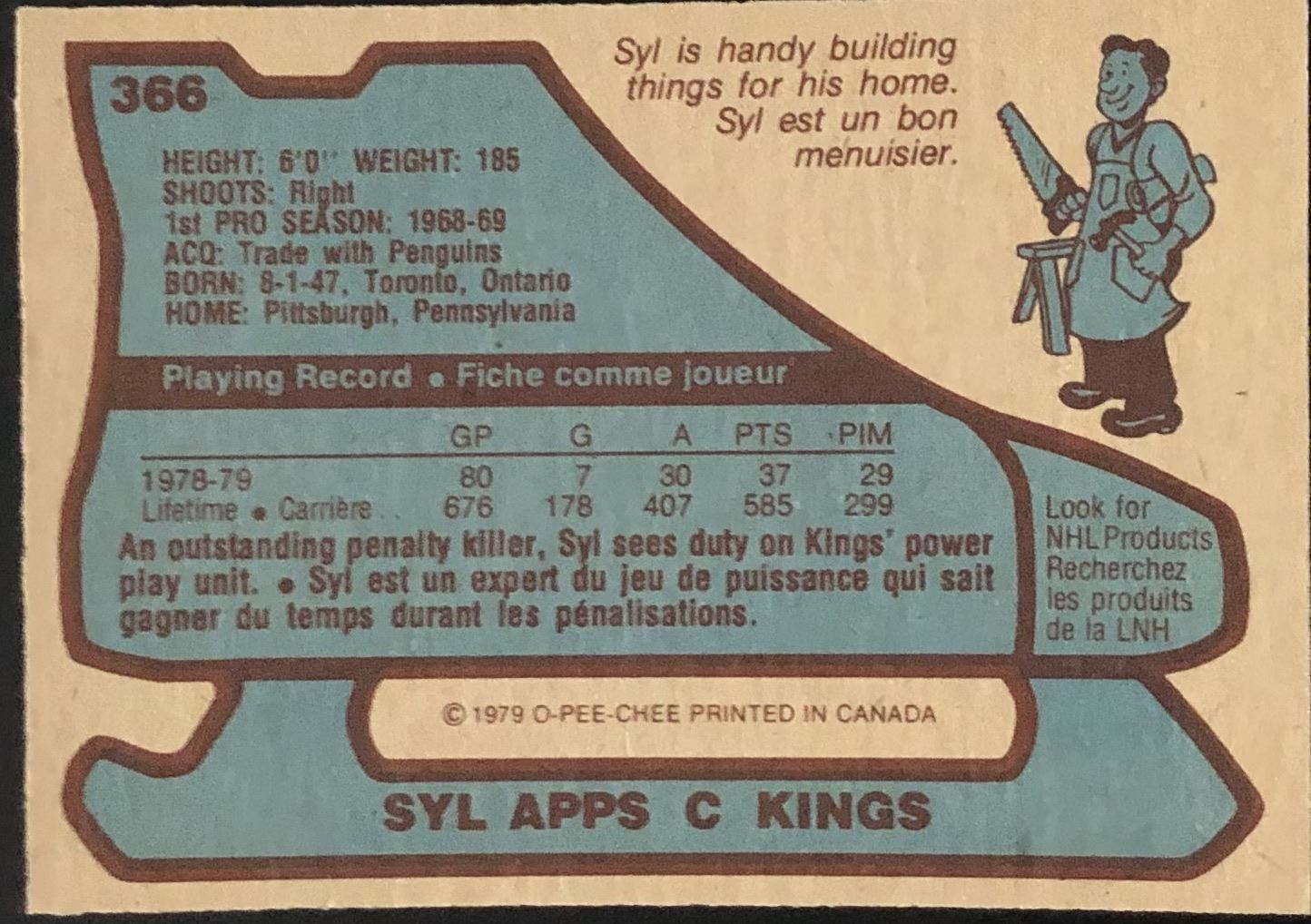 Lot 1010 1979-80 O-PEE-CHEE SYL APPS