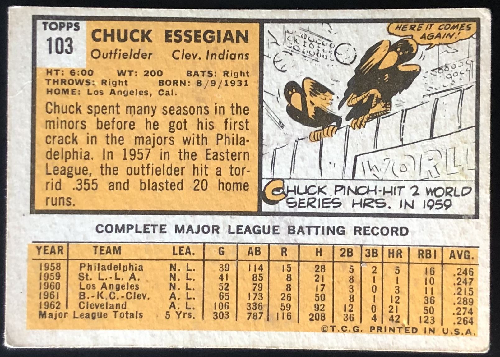 Lot 1020 1963 TOPPS CHUCK ESSEGIAN