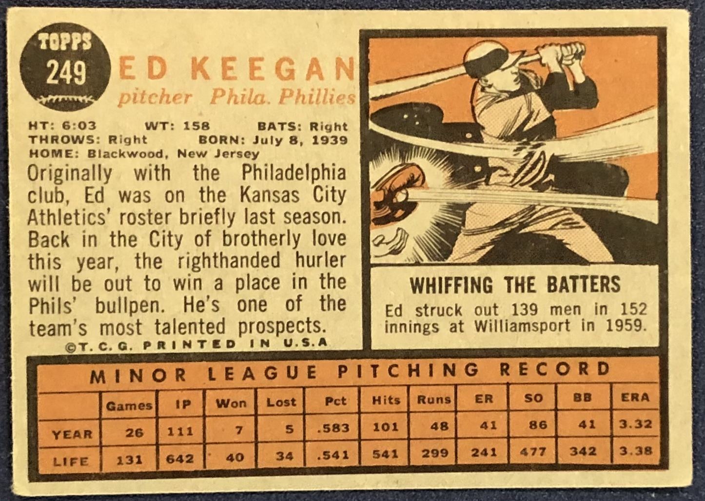 Lot 1027 1962 TOPPS ED KEEGAN ROOKIE CARD