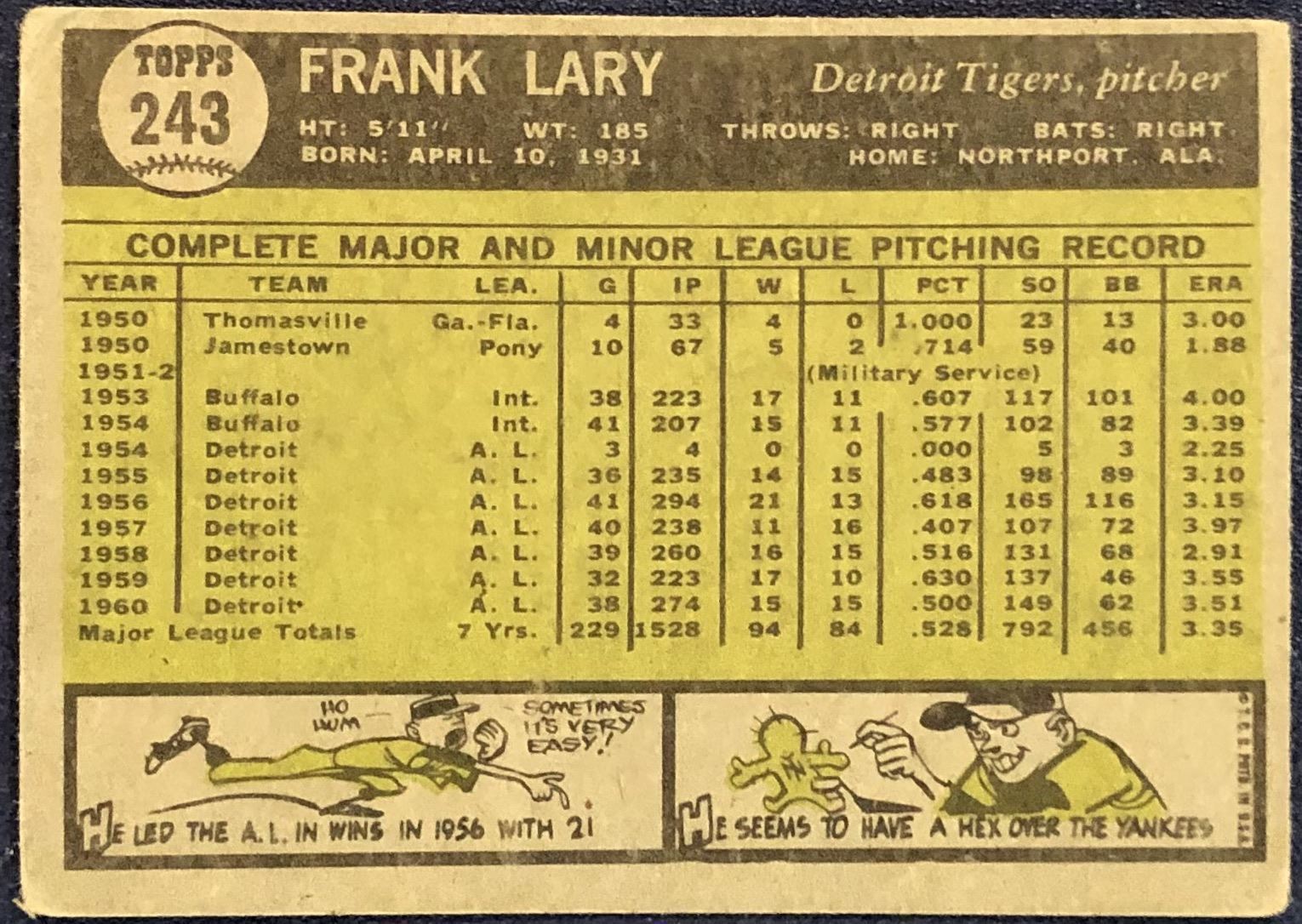 Lot 1038 1961 TOPPS FRANK LARY