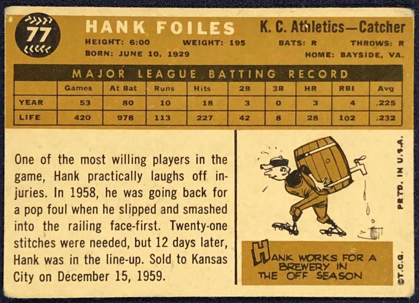 Lot 1043 1960 TOPPS WHITE BACK HANK FOILES