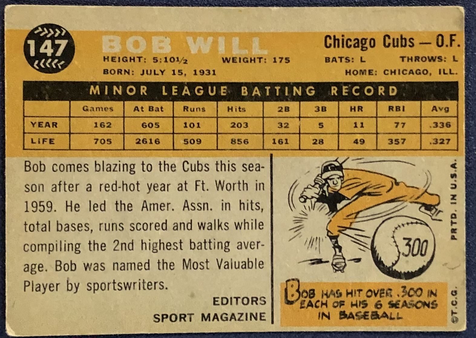 Lot 1047 1960 TOPPS BOB WILL ROOKIE CARD