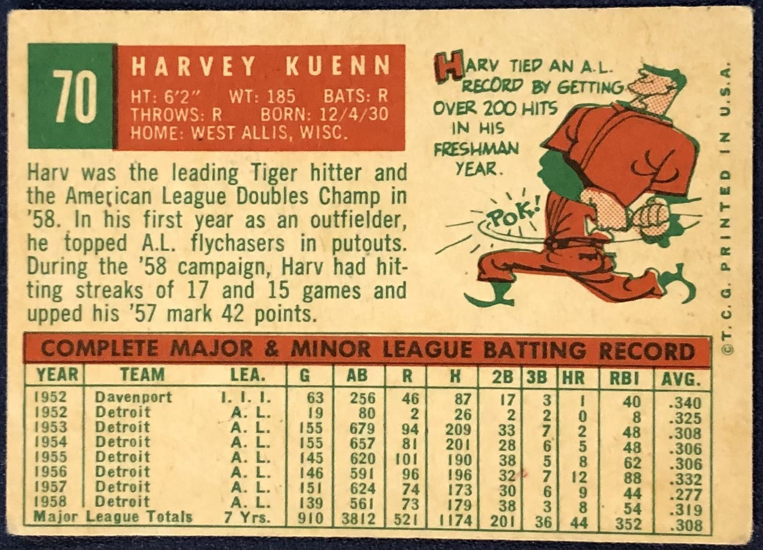 Lot 1048 1959 TOPPS WHITEBACK HARVEY KUENN