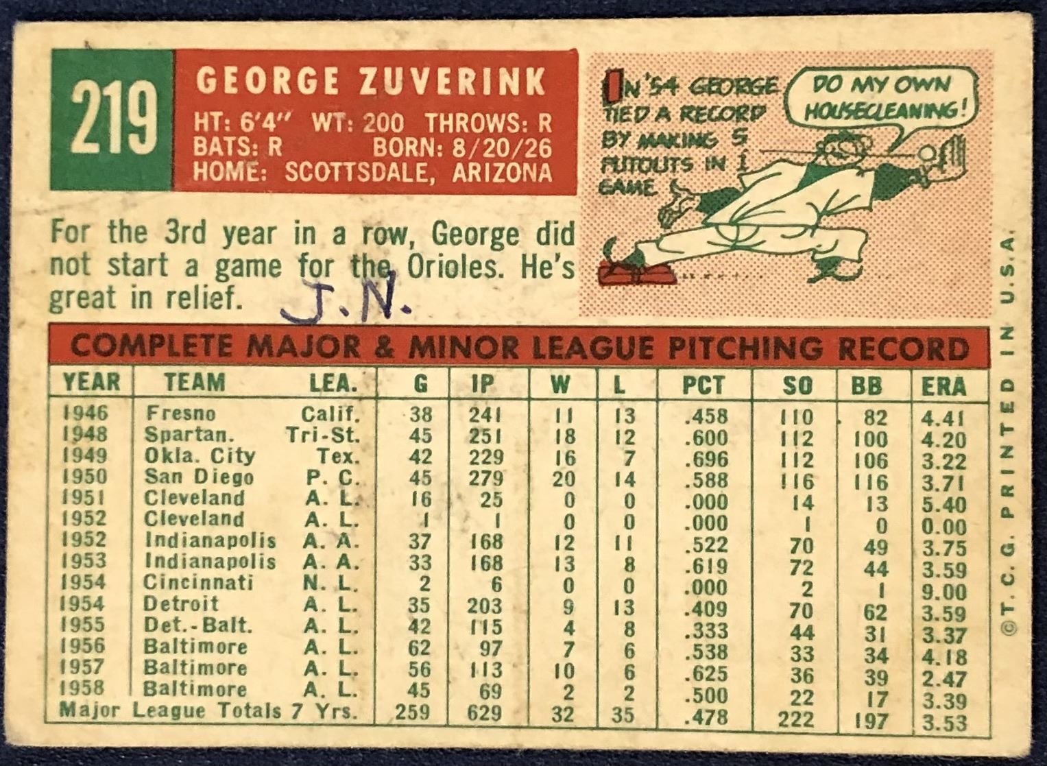 Lot 1049 1959 TOPPS WHITEBACK GEORGE ZUVERINK