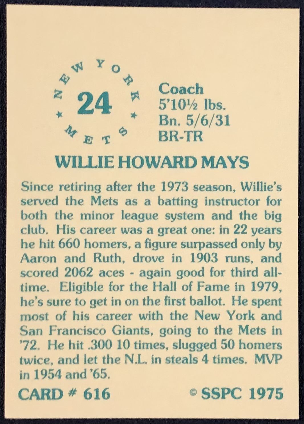 Lot 1126 1975 SSPC BASEBALL WILLIE MAYS (HOF)