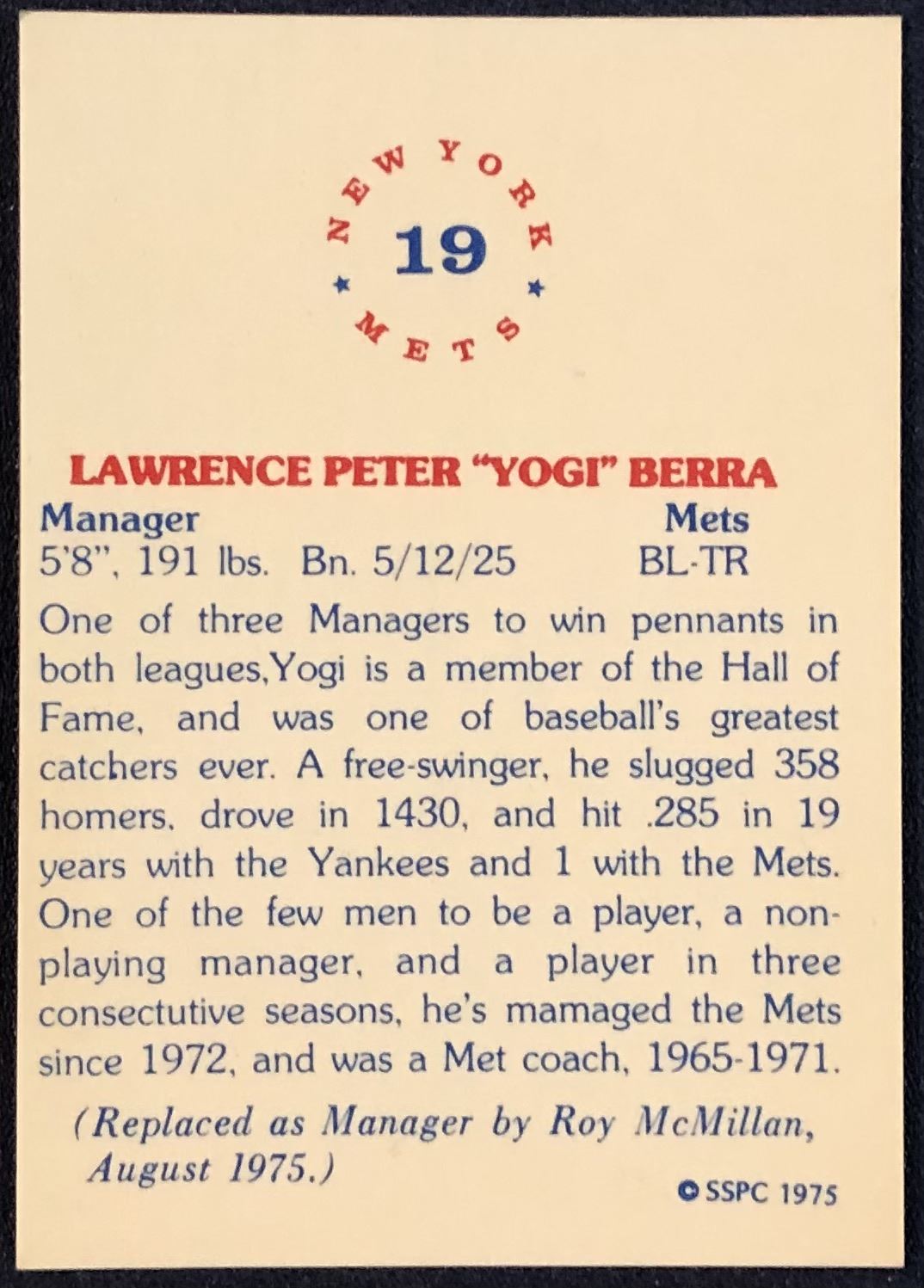 Lot 1127 1975 SSPC BASEBALL YOGI BERRA (HOF)