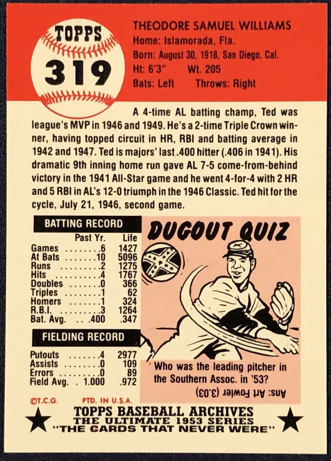 Lot 1135 1991 TOPPS ARCHIVES (1953) TED WILLIAMS (HOF)