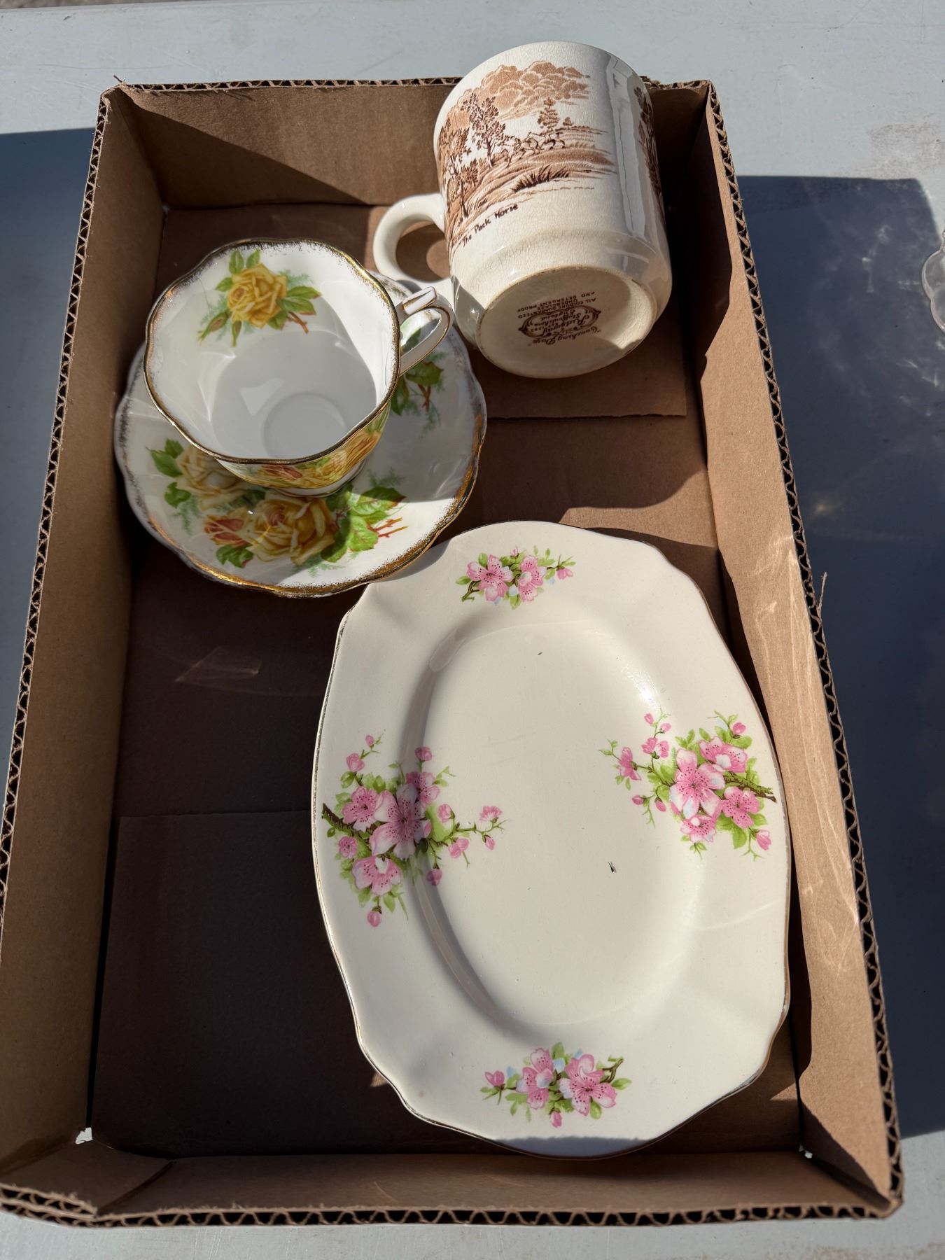 Lot 802 Tea, cups, sausage, mug, and dish