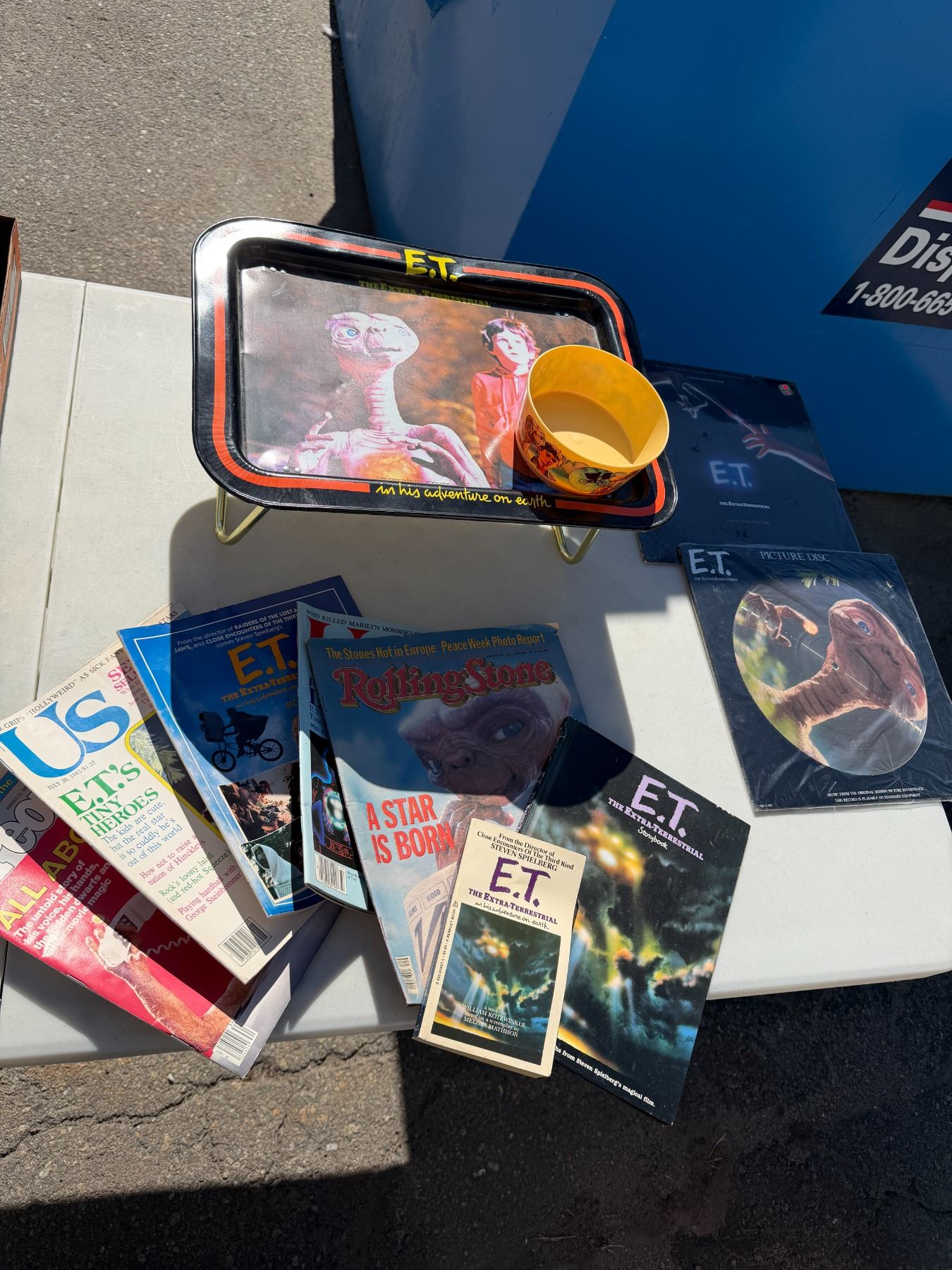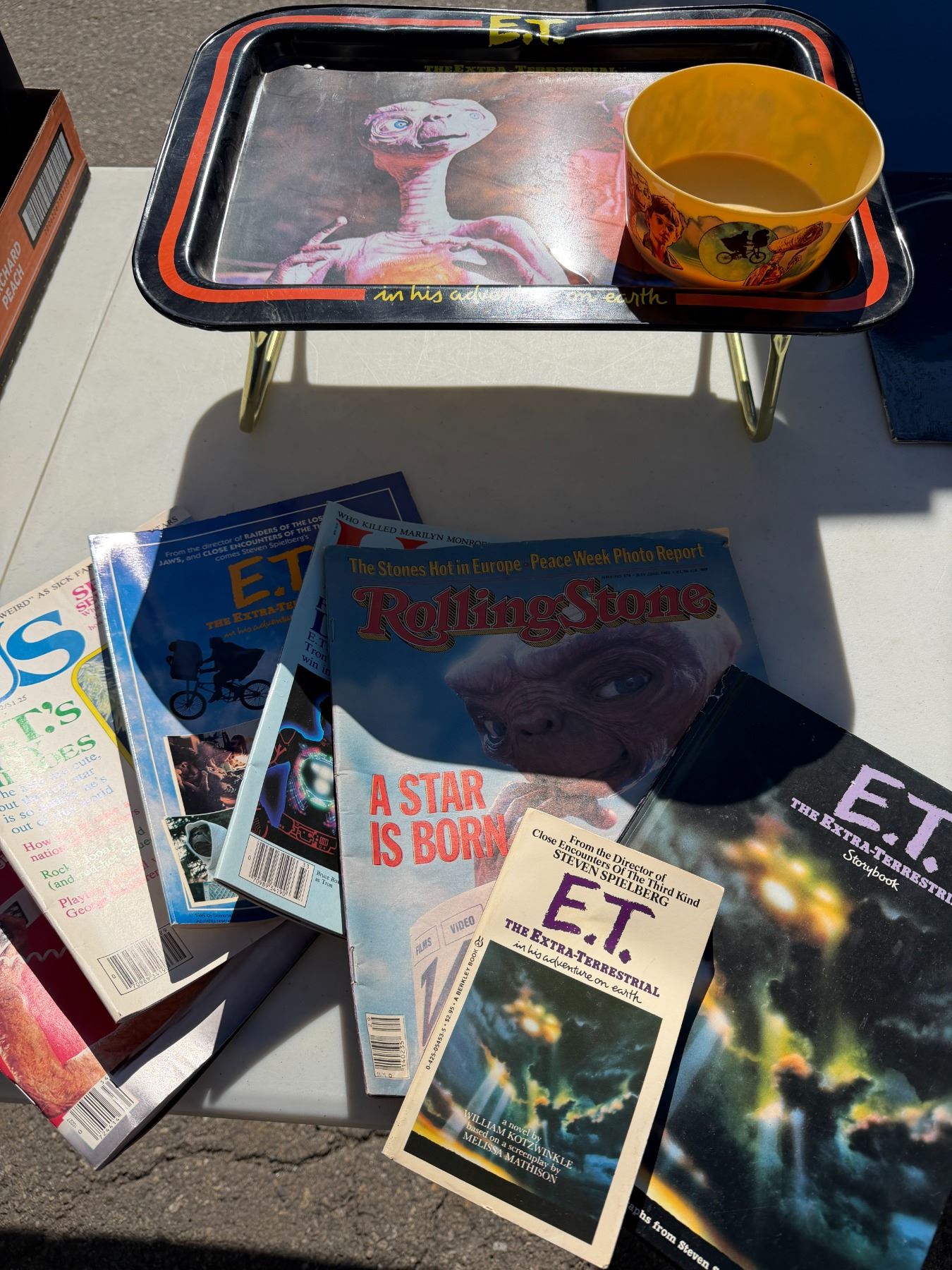 Vintage, ET lap tray and bowl, magazines and Picture disc