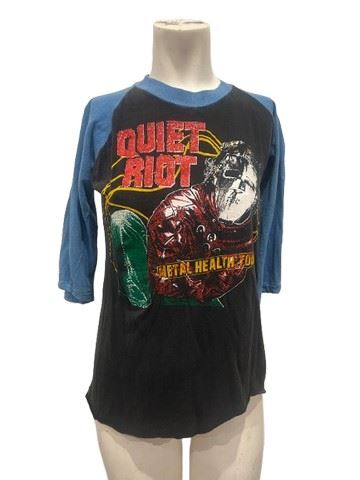 Joe Dirt (2001) - Vintage Quiet Riot ringer three-quarter sleeve of T-shirt from the mental health tour. Size women’s medium. Used on the set of production for a possible costume for either young Joe dirt or a background character.