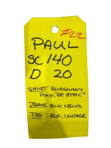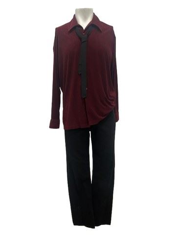 Loser (2000) - Paul (Jason Biggs) screen worn, burgundy poly the ethic, long sleeve, button-down shirt, black Levi’s jeans, and black vintage tie. Includes costume department, wardrobe tag noting it was used in scene number 140.