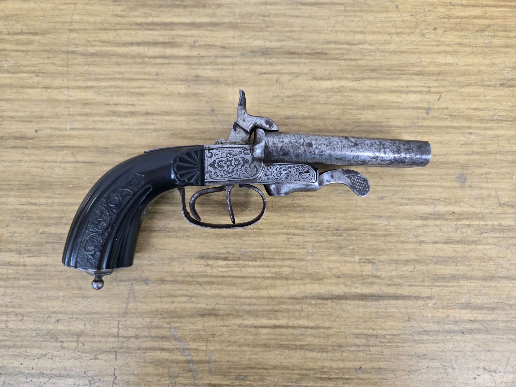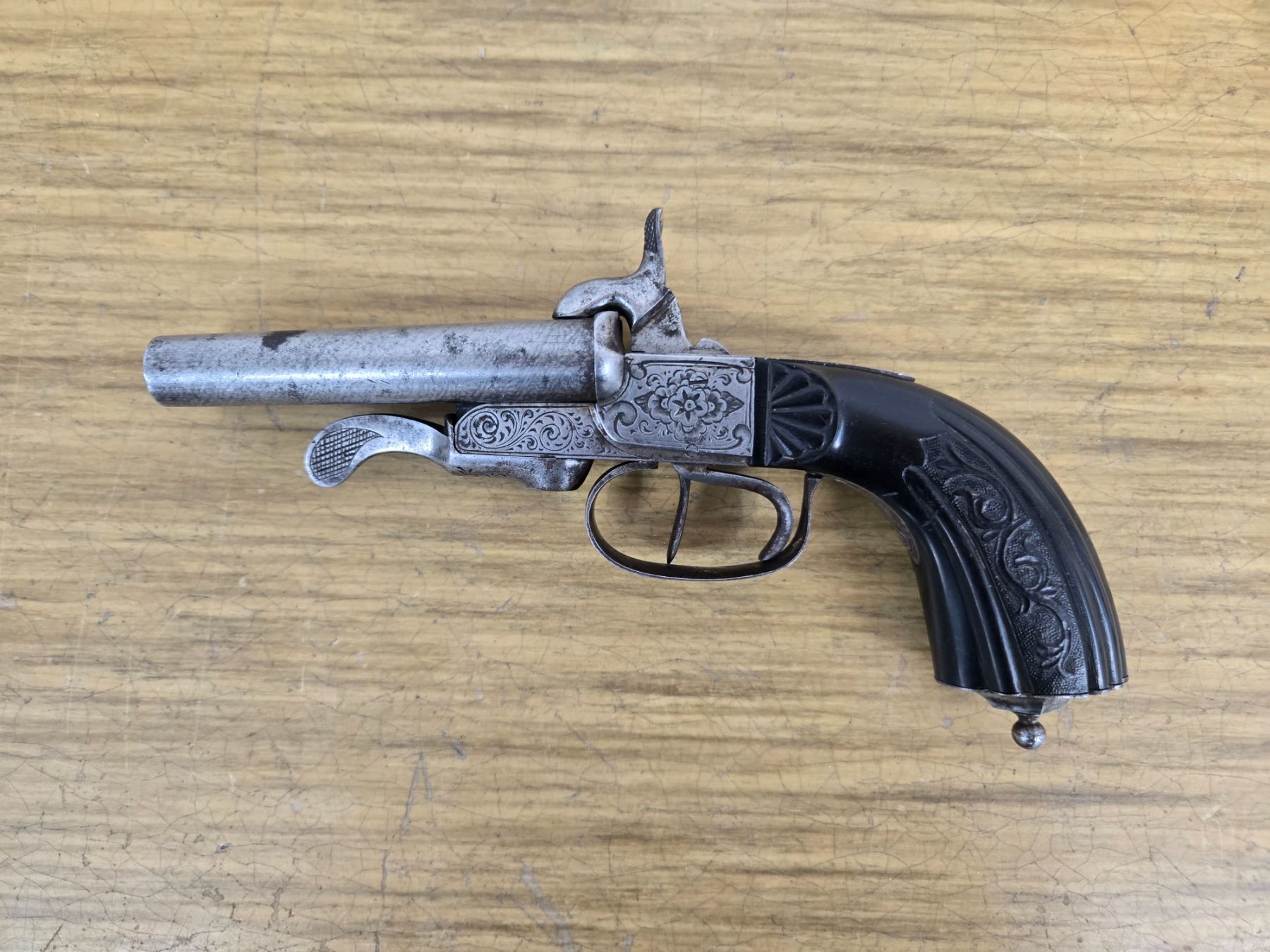 Lot 524 Antique Status Belgian Double Barrel pinfire pistol