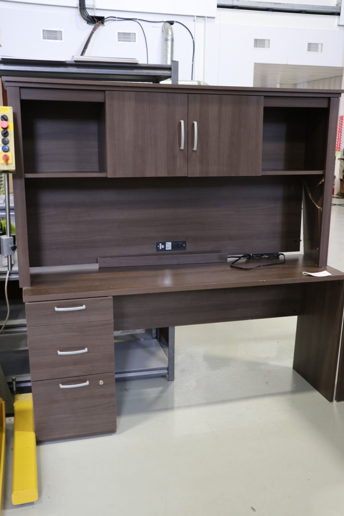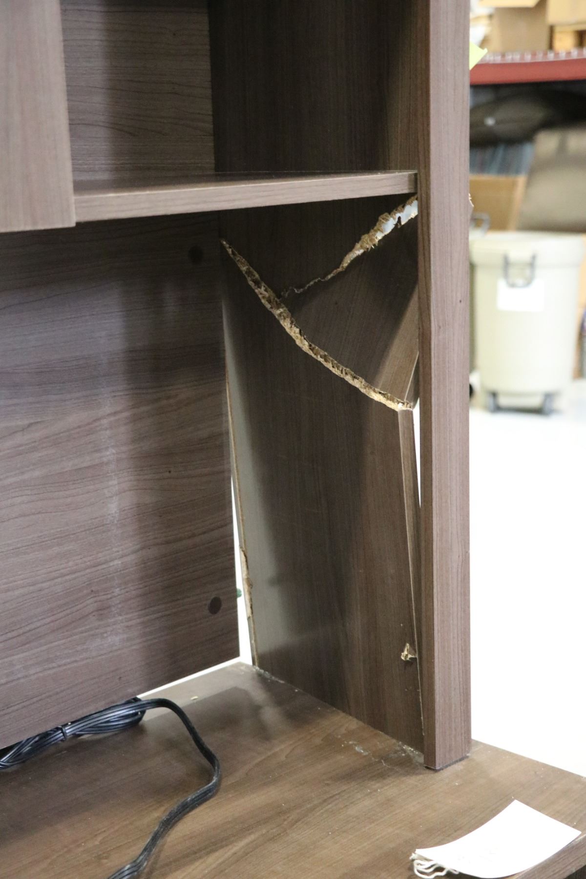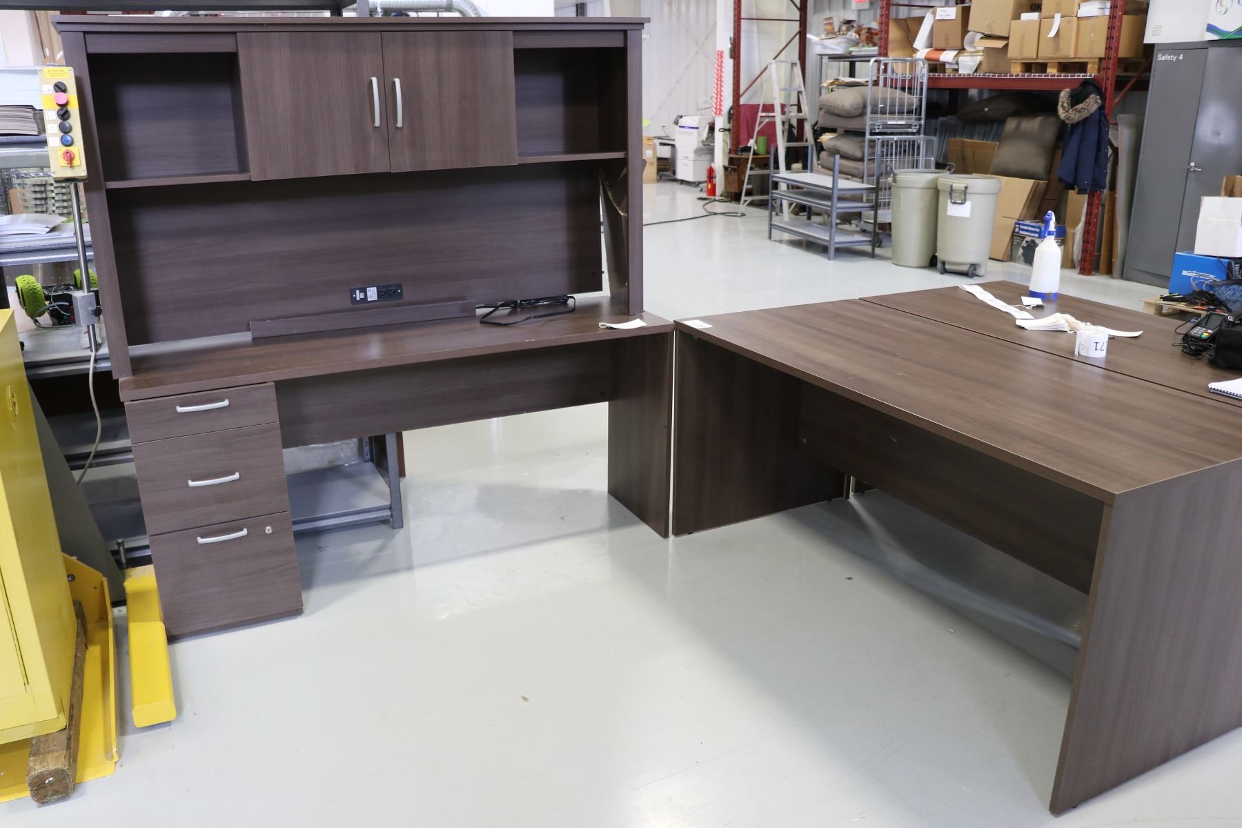 Office suit including desk (30x65x30) and a desk/hutch (67x65x20) Note: damage on top portion of hutch.