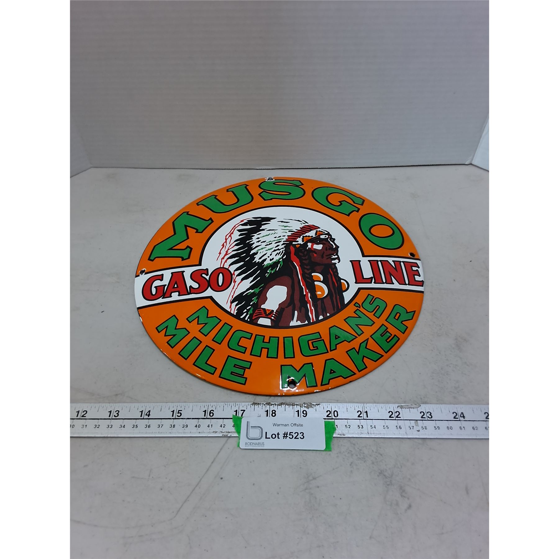 Lot 523 Retro Metal "Musgo Gasoline" Convex Wall Sign