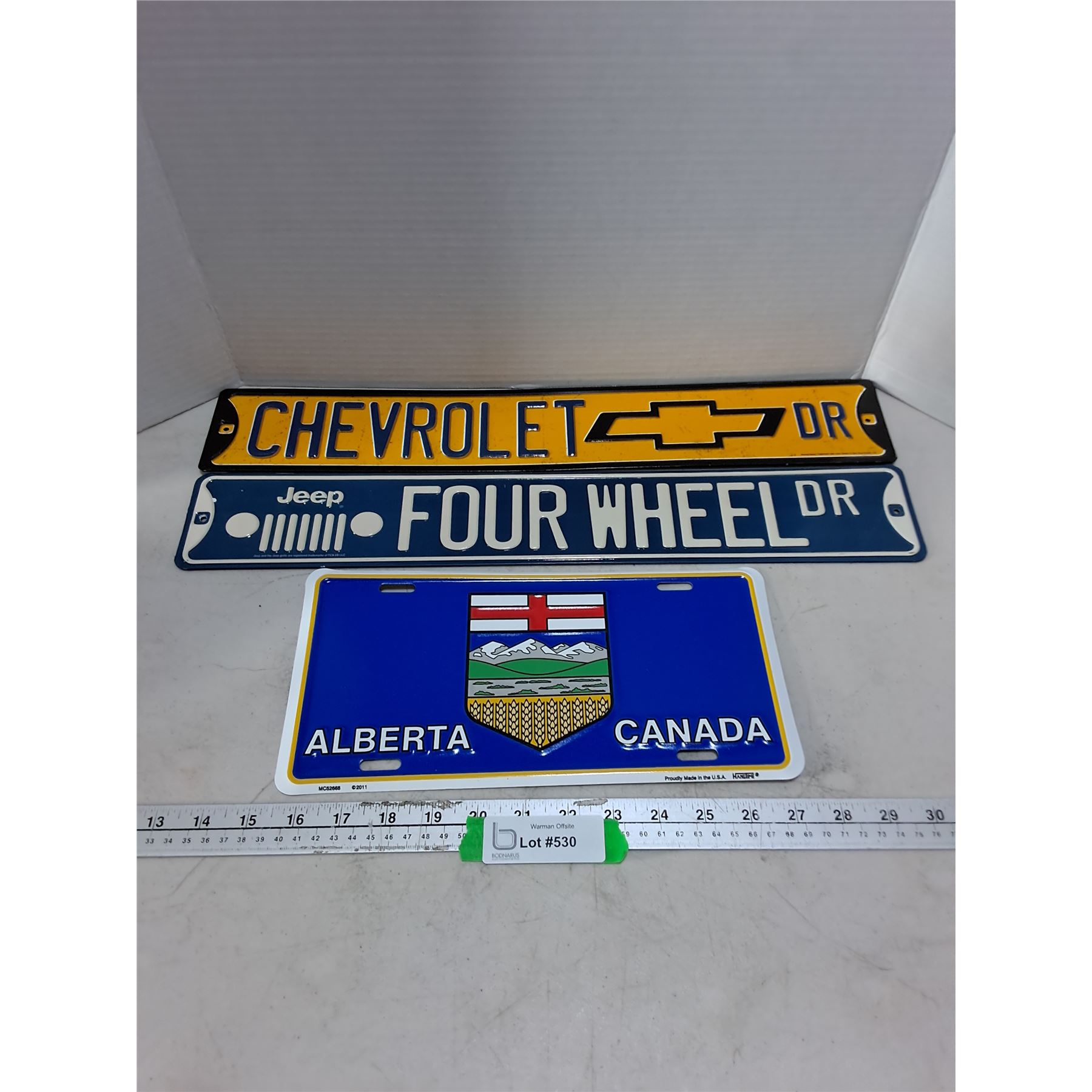 Lot 530 (2) Retro Metal Signs (Chevrolet & Jeep), Alberta Novelty License Plate