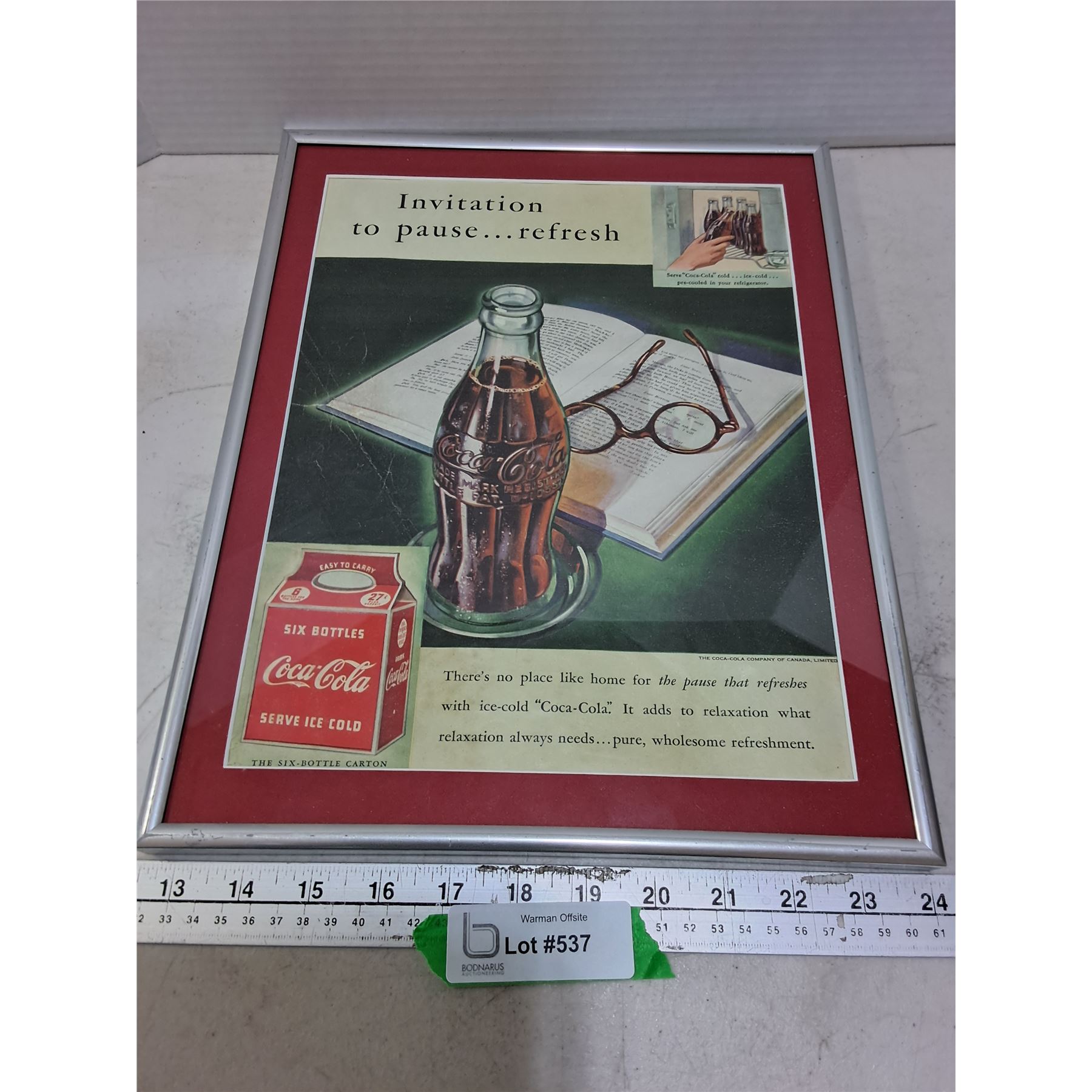 Lot 537 Framed 1939 Coca-Cola Advertisement - 14.5" x 11.5"