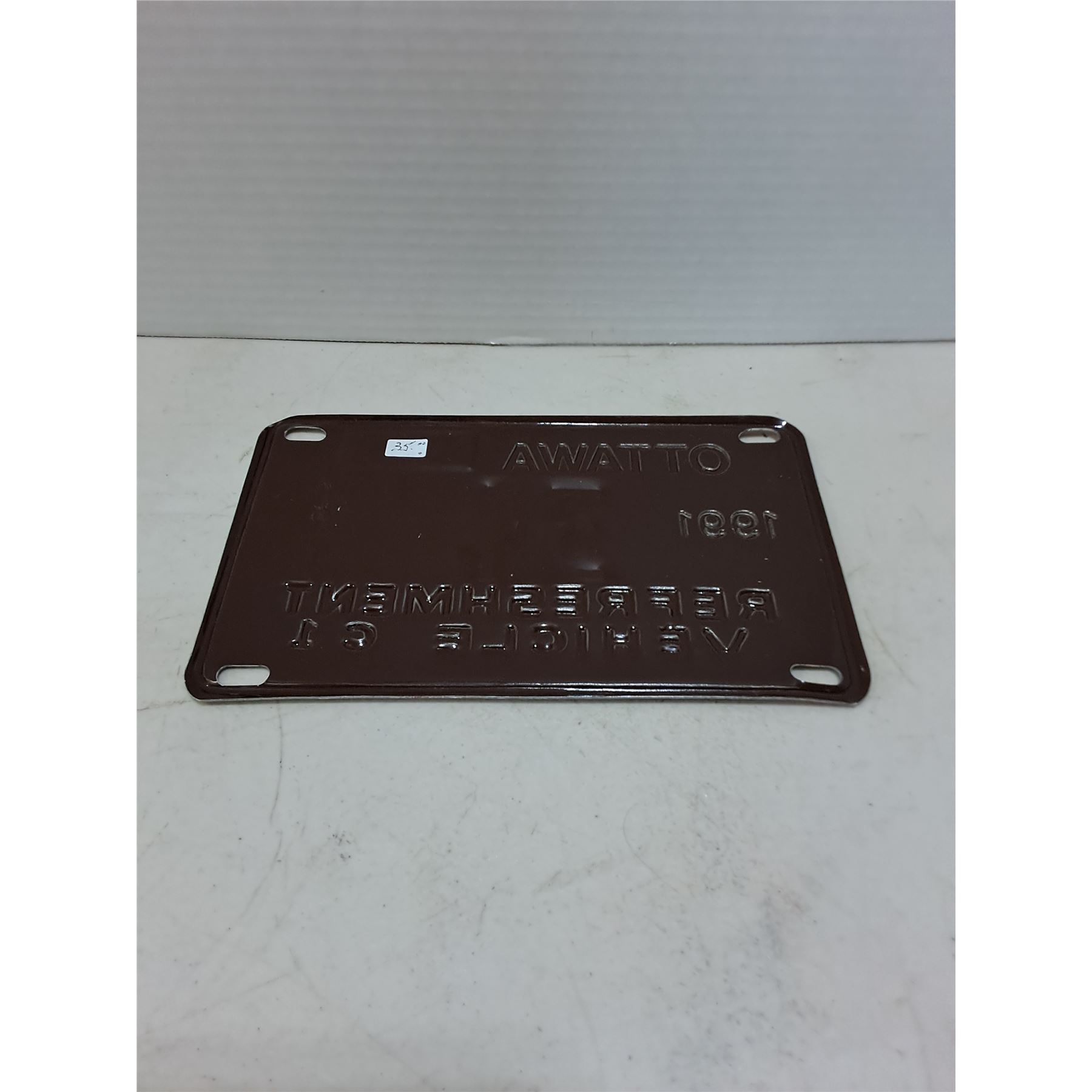 Lot 548 1991 Ottawa Refreshment Vehicle License Plate