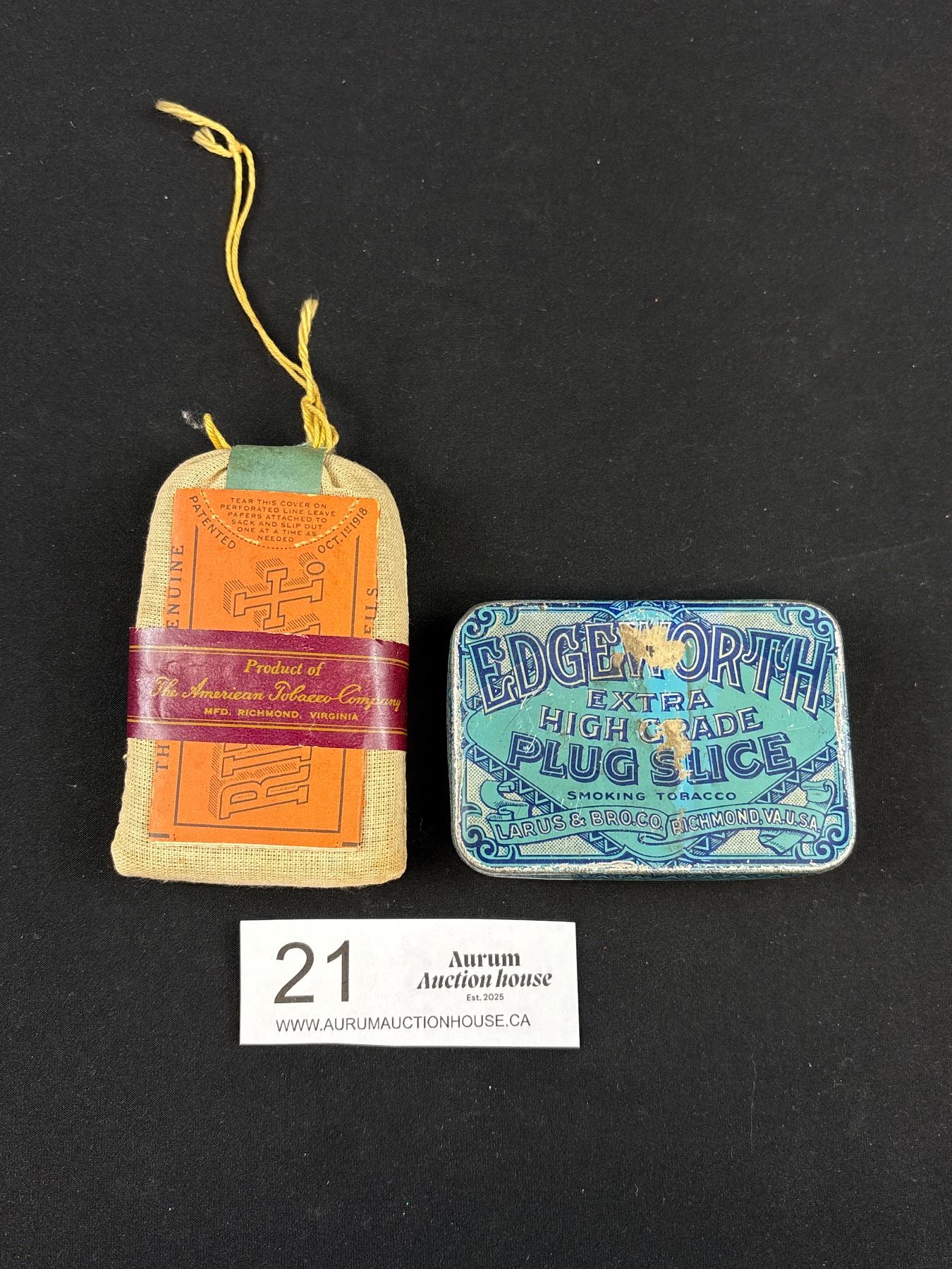 Lot 21 2 Vintage Tobacco Items Edgeworth Tin and Full Durham Tobacco Pouch
