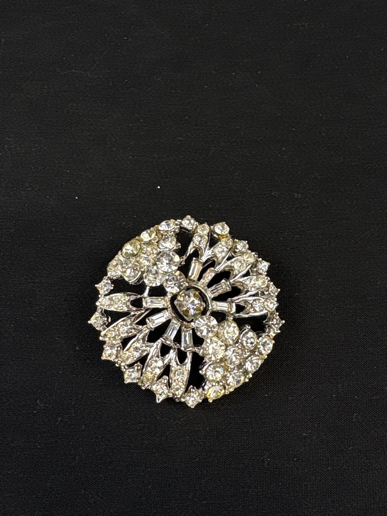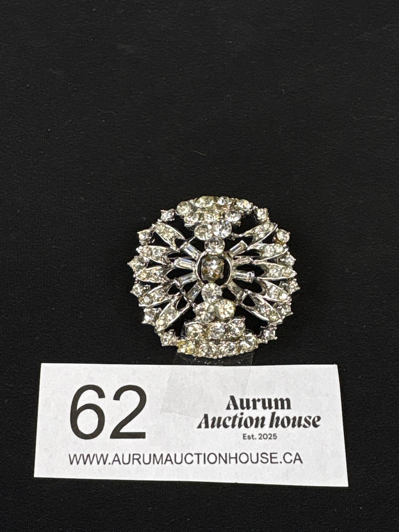 Lot 62 Vintage Rhinestone Starburst Silver Tone Brooch