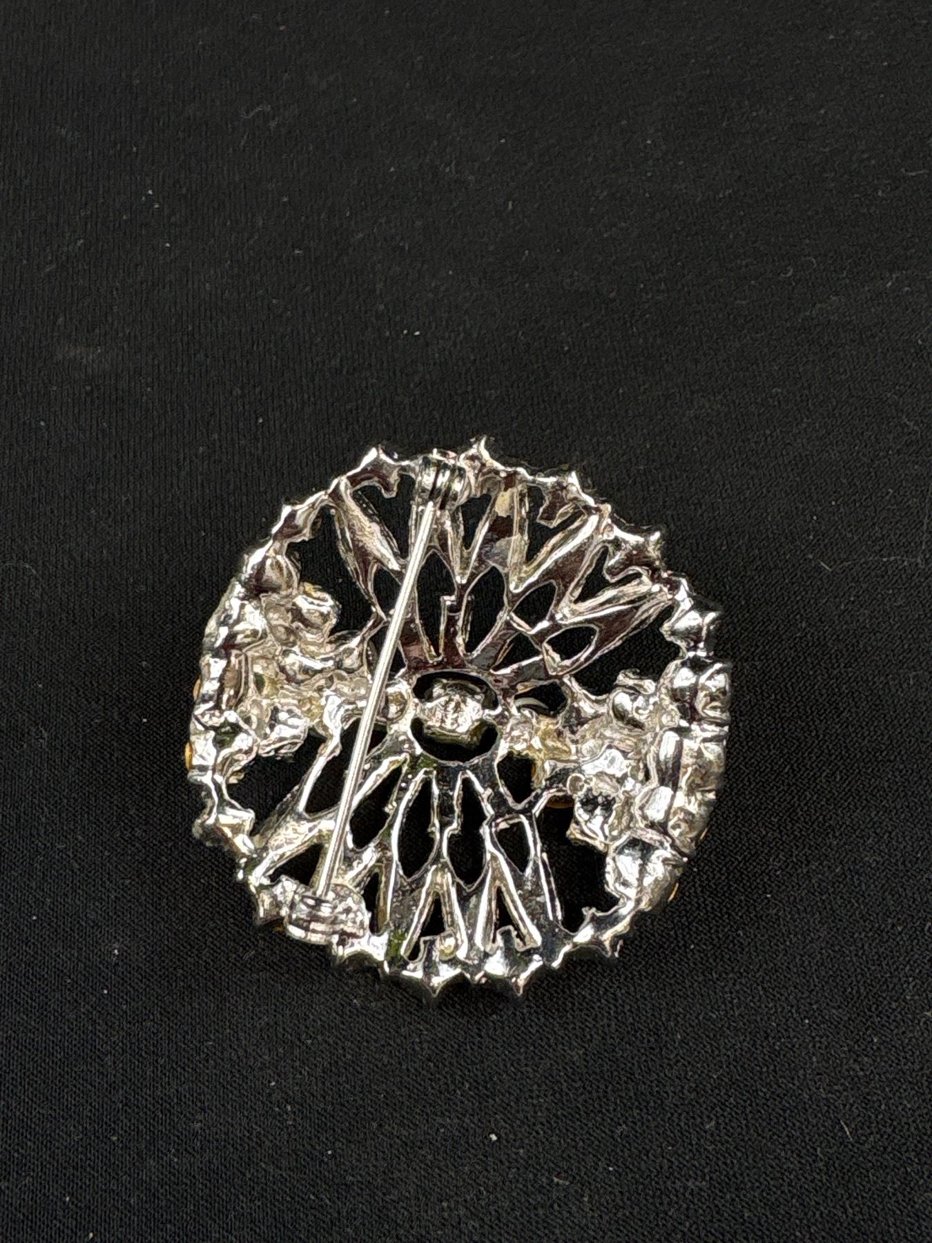 Vintage Rhinestone Starburst Silver Tone Brooch