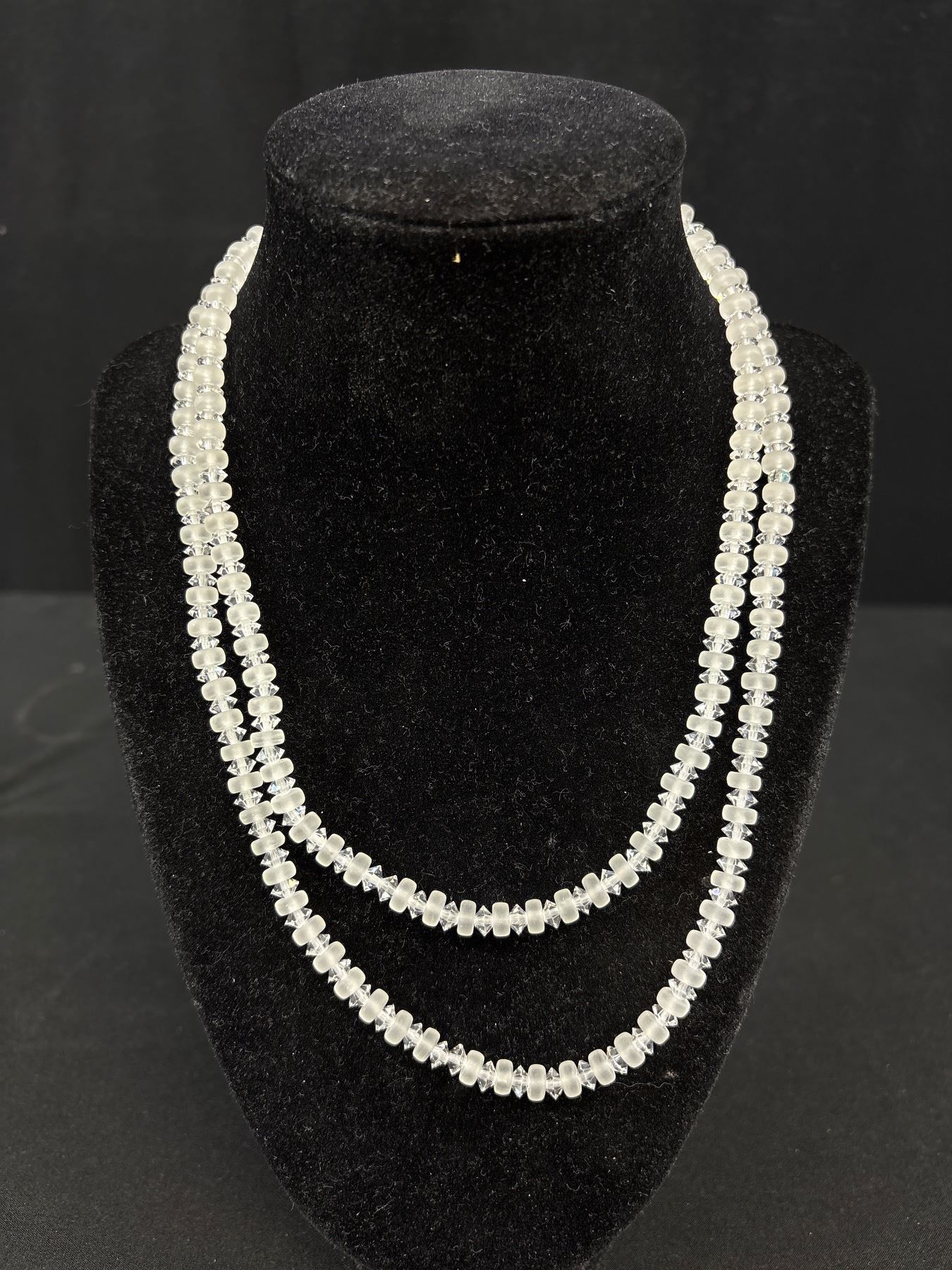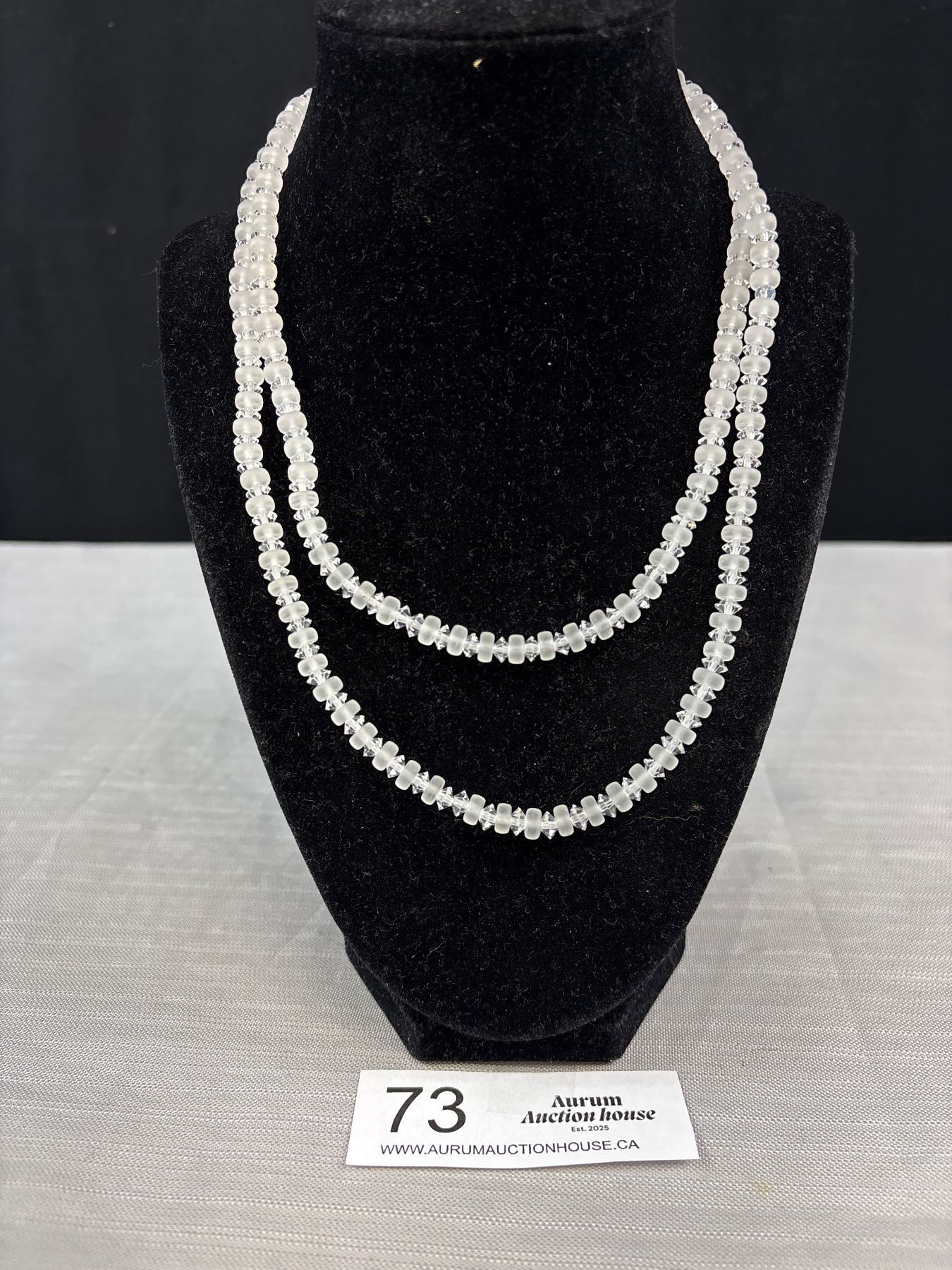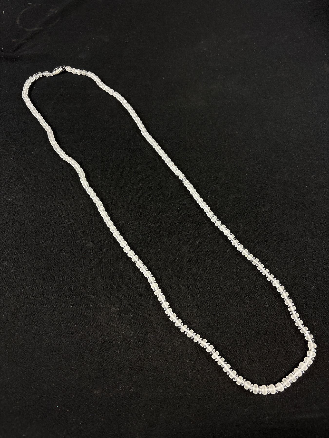 Lot 73 Vintage Semi Precious Stone Necklace Faceted Rock Crystal Bead w/ Silver-tone Fishhook Filigree Clas
