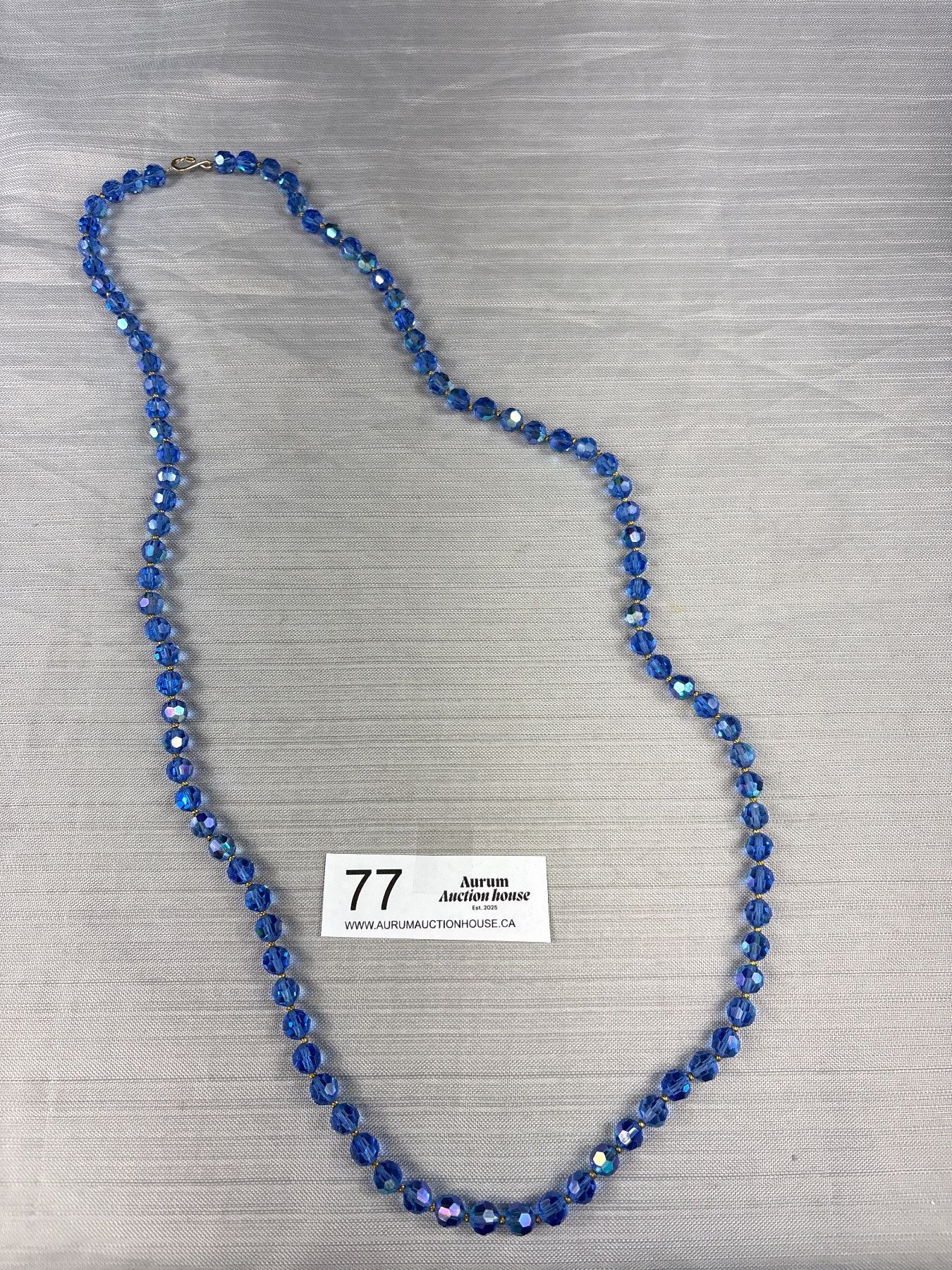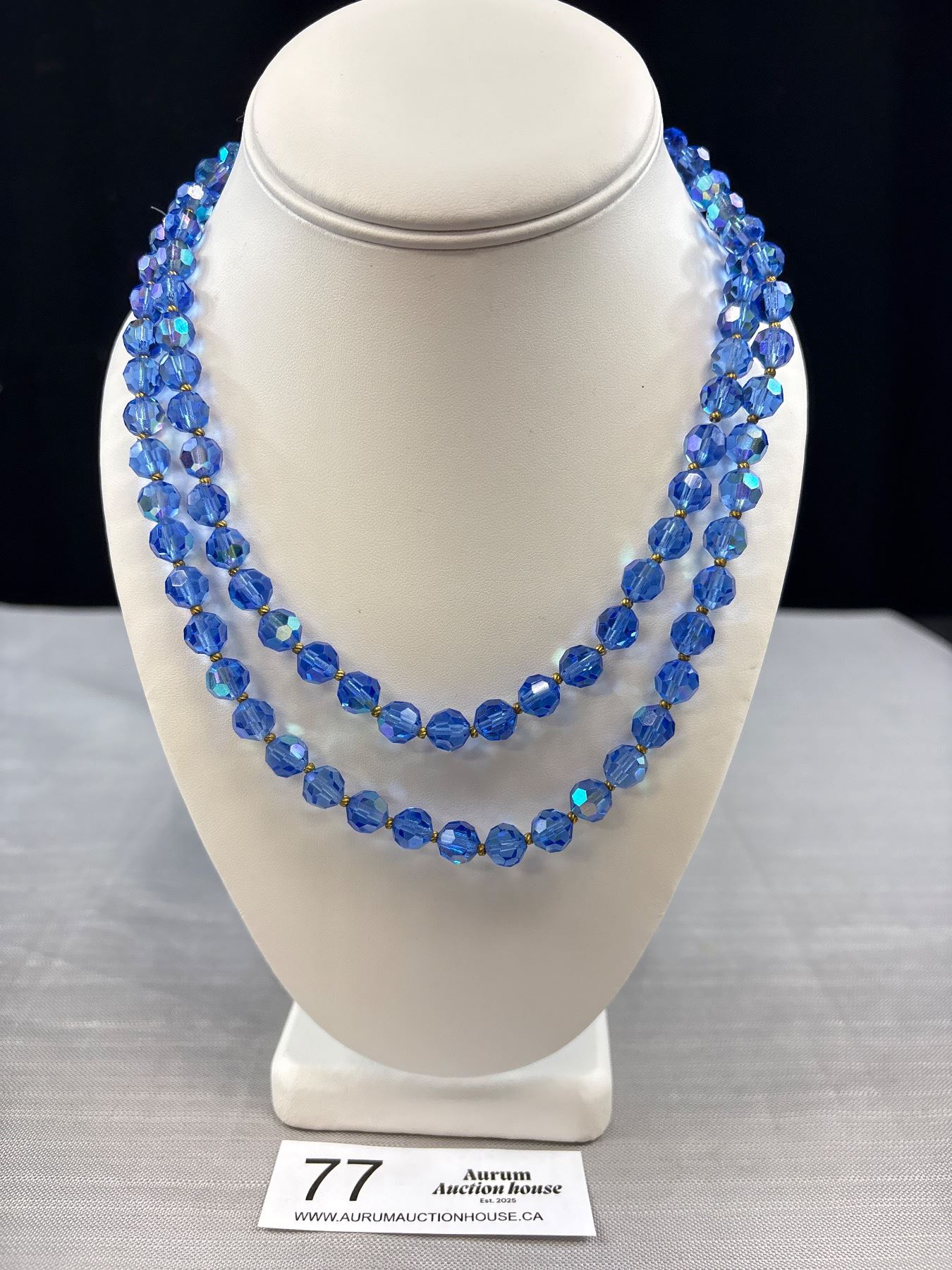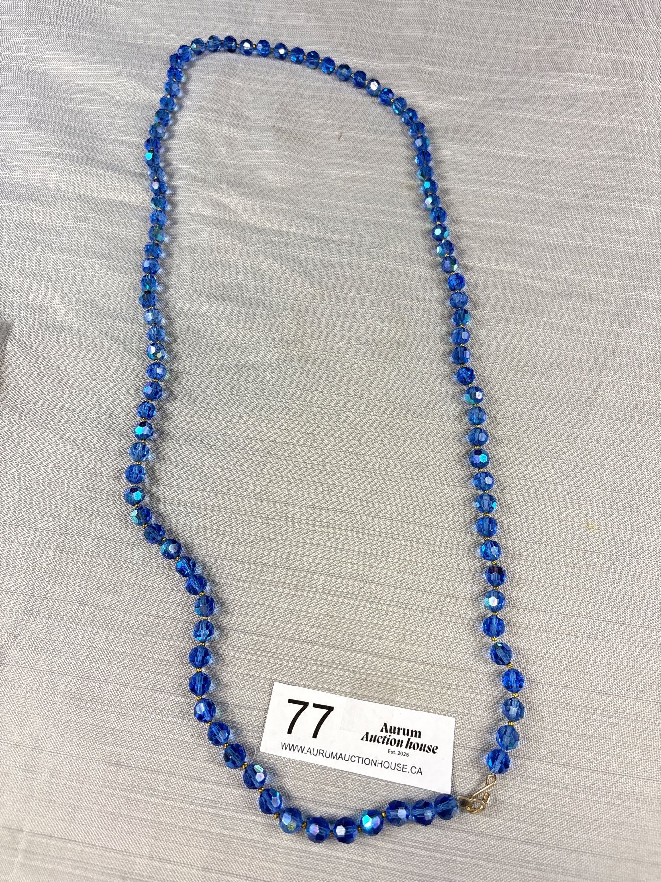 Lot 77 Vintage Blue Aurora Borealis Glass Bead 36" Long Necklace