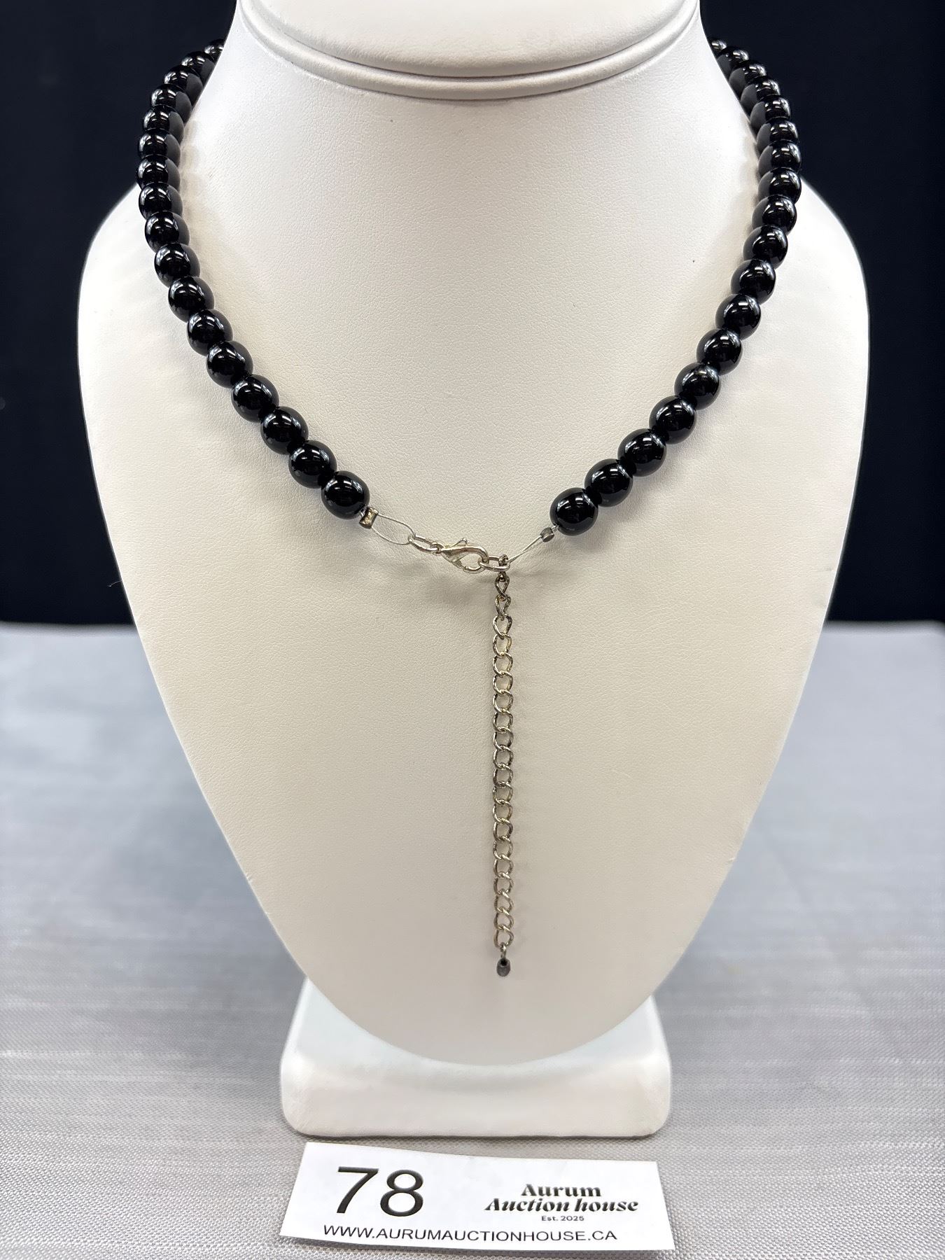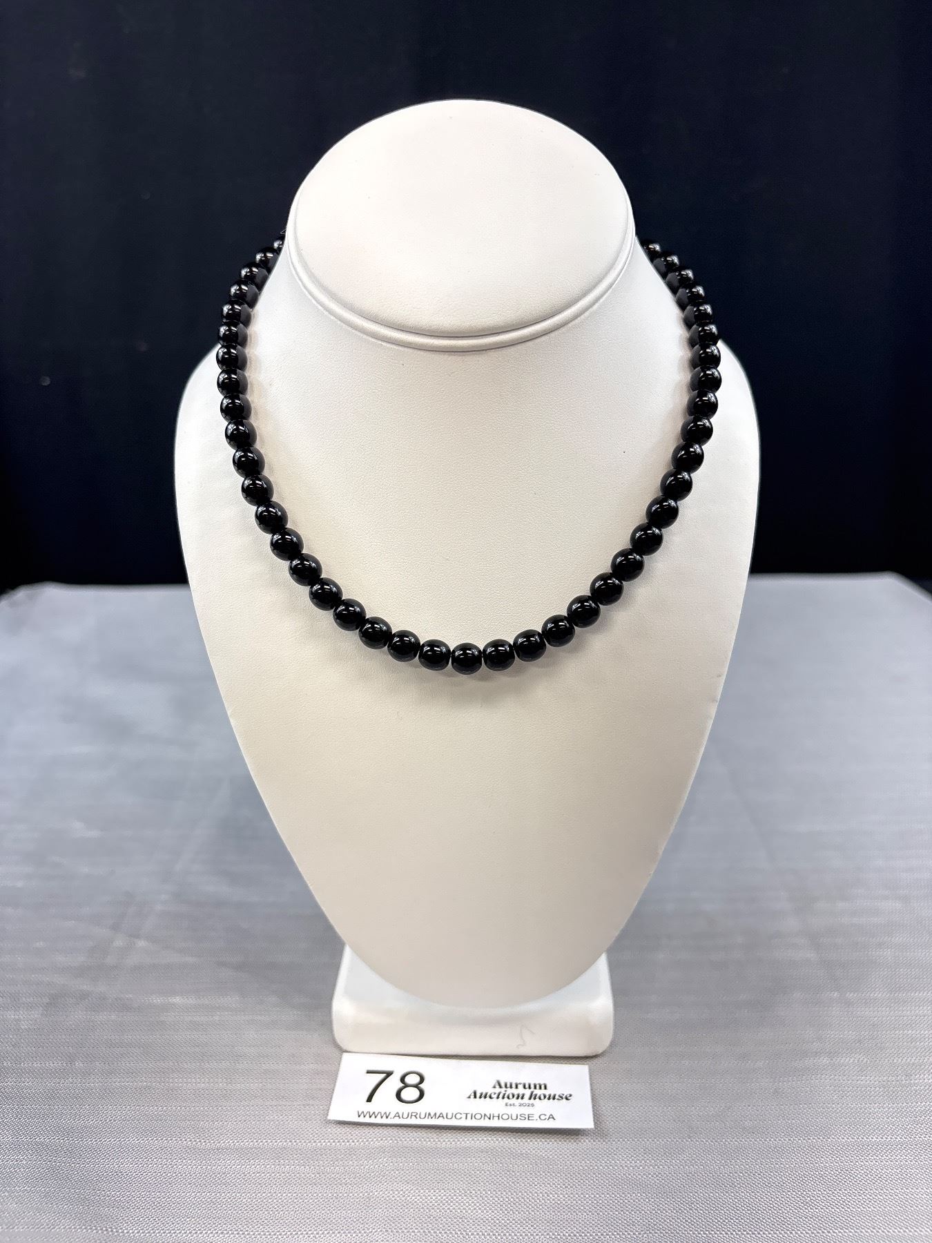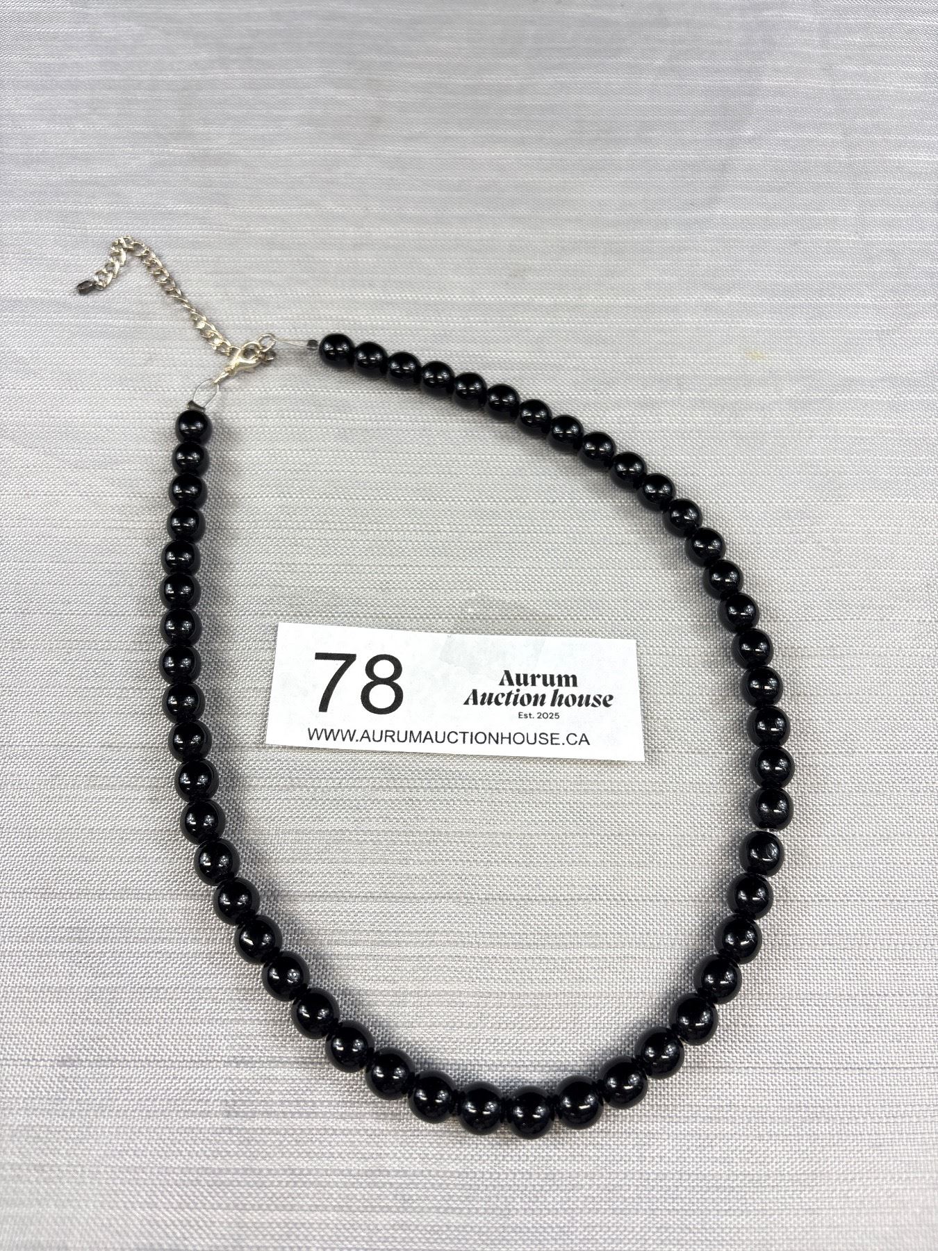 Lot 78 Vintage Black Glass Bead Necklace 18" Long