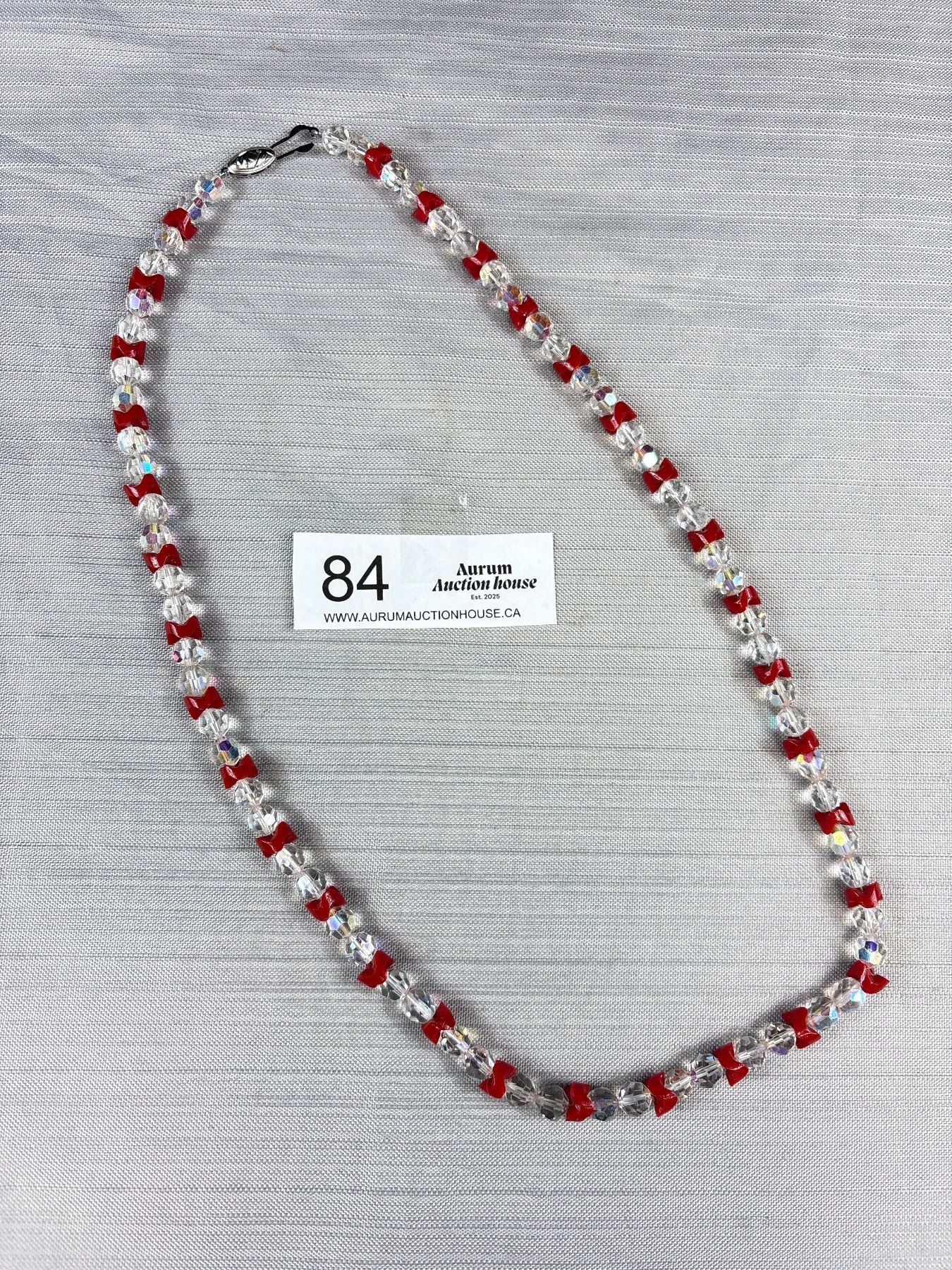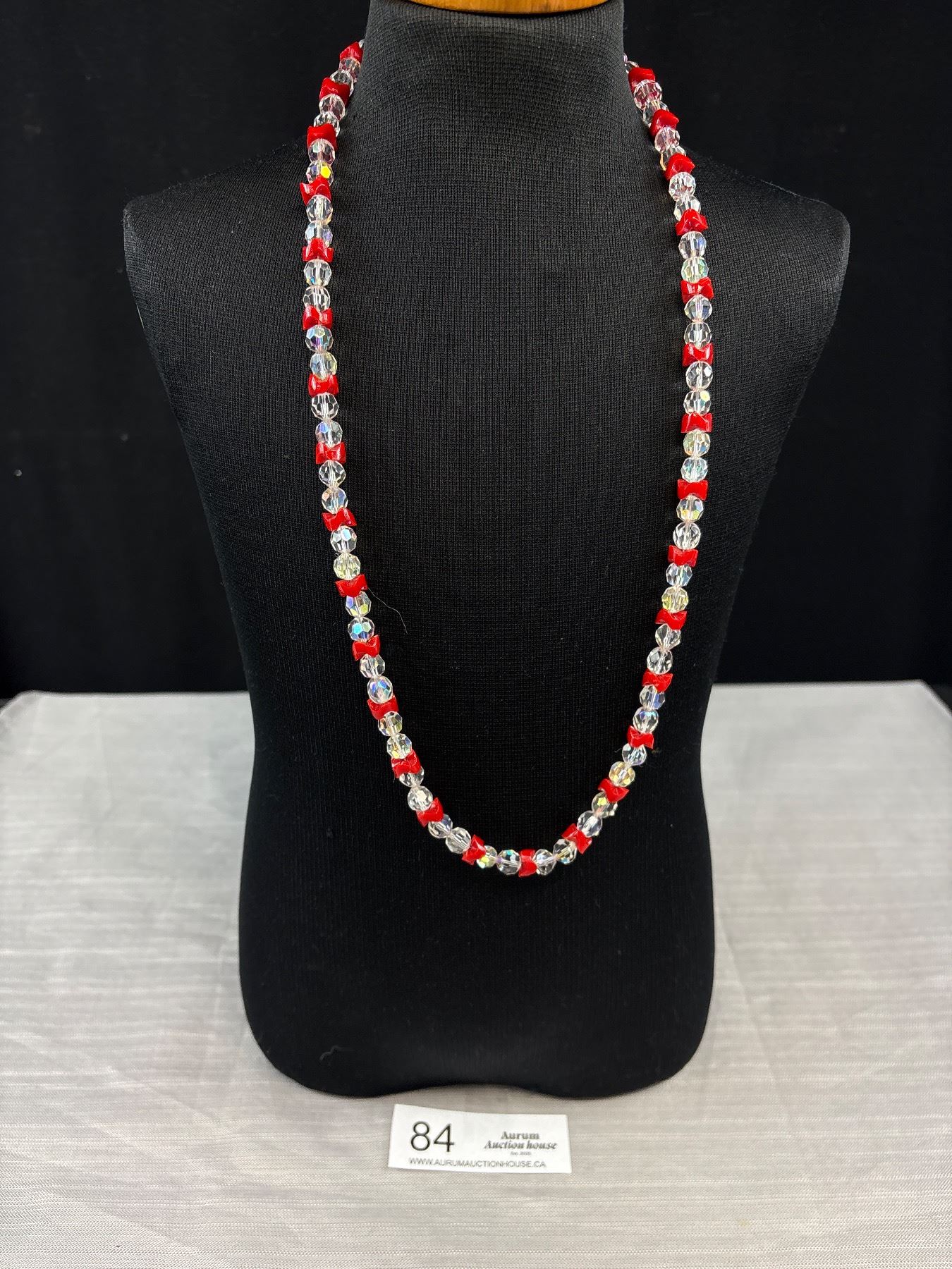 Lot 84 Vintage 26" Long Festive Style Candy Cane-Faceted Clear and Red Beads w/ A Silver Tone Fishhook Fili