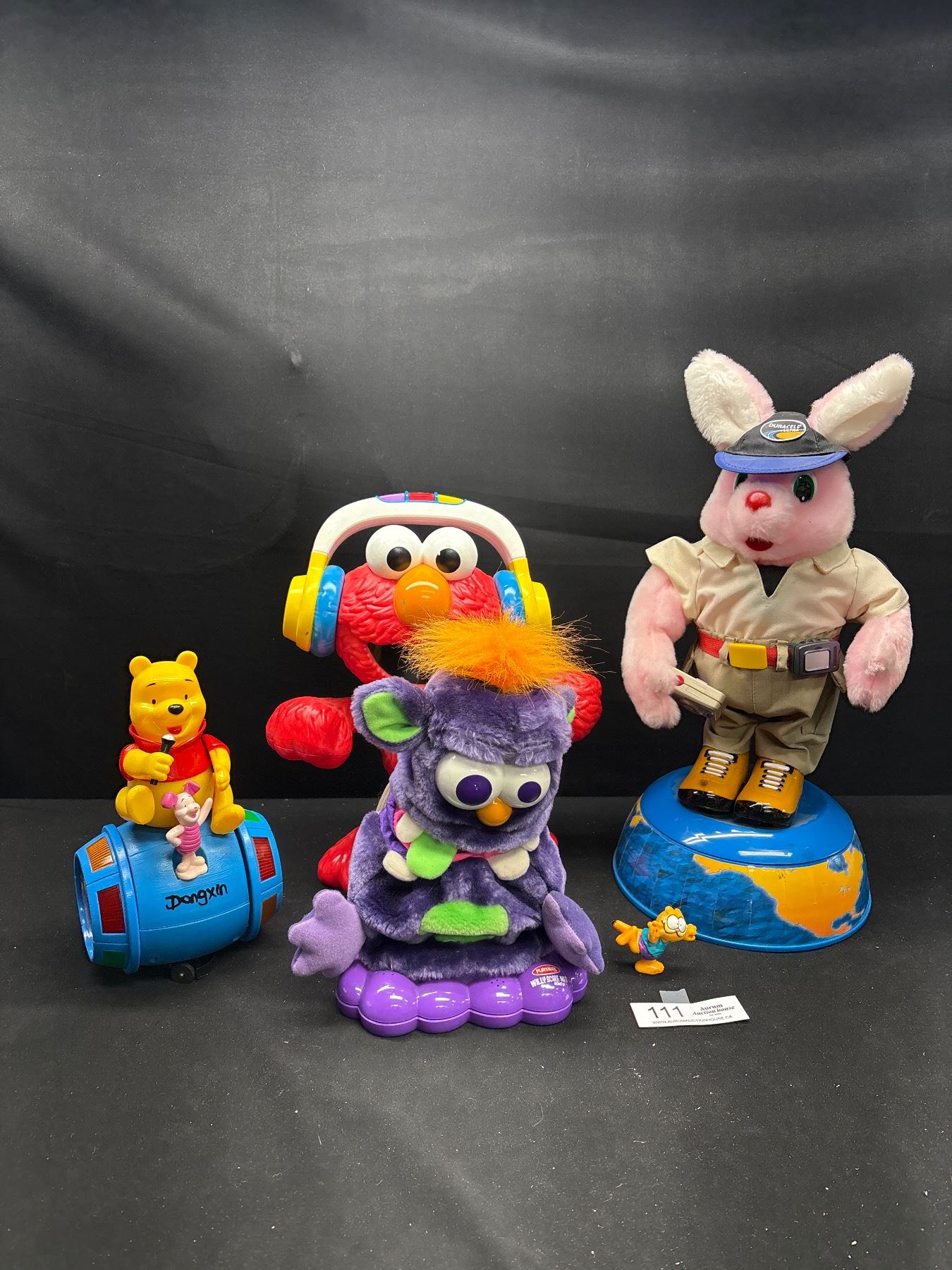 Lot 111 Lot of 4 Vintage Mechanical Figures Seasame Street, Winnie the Pooh, Etc