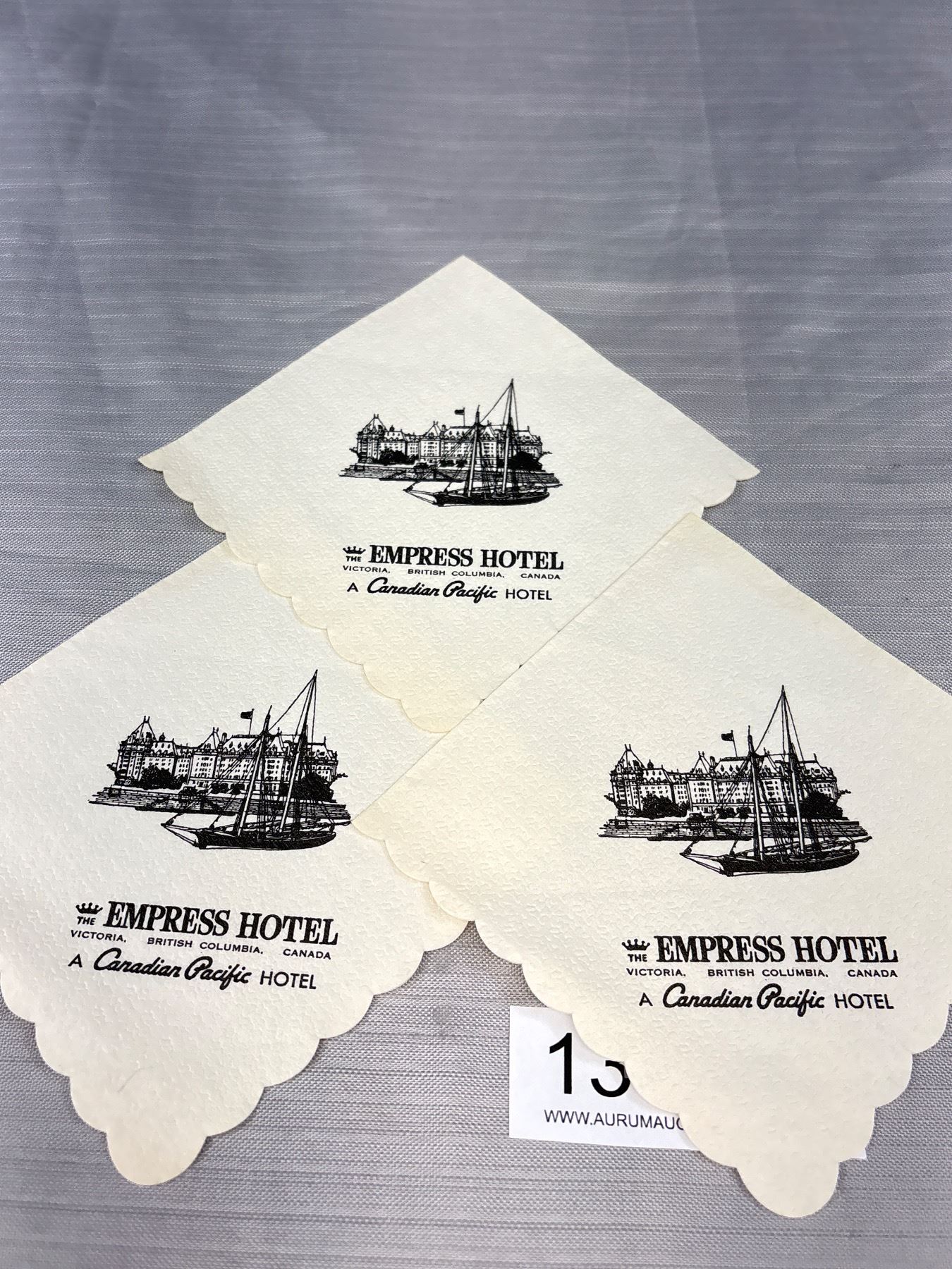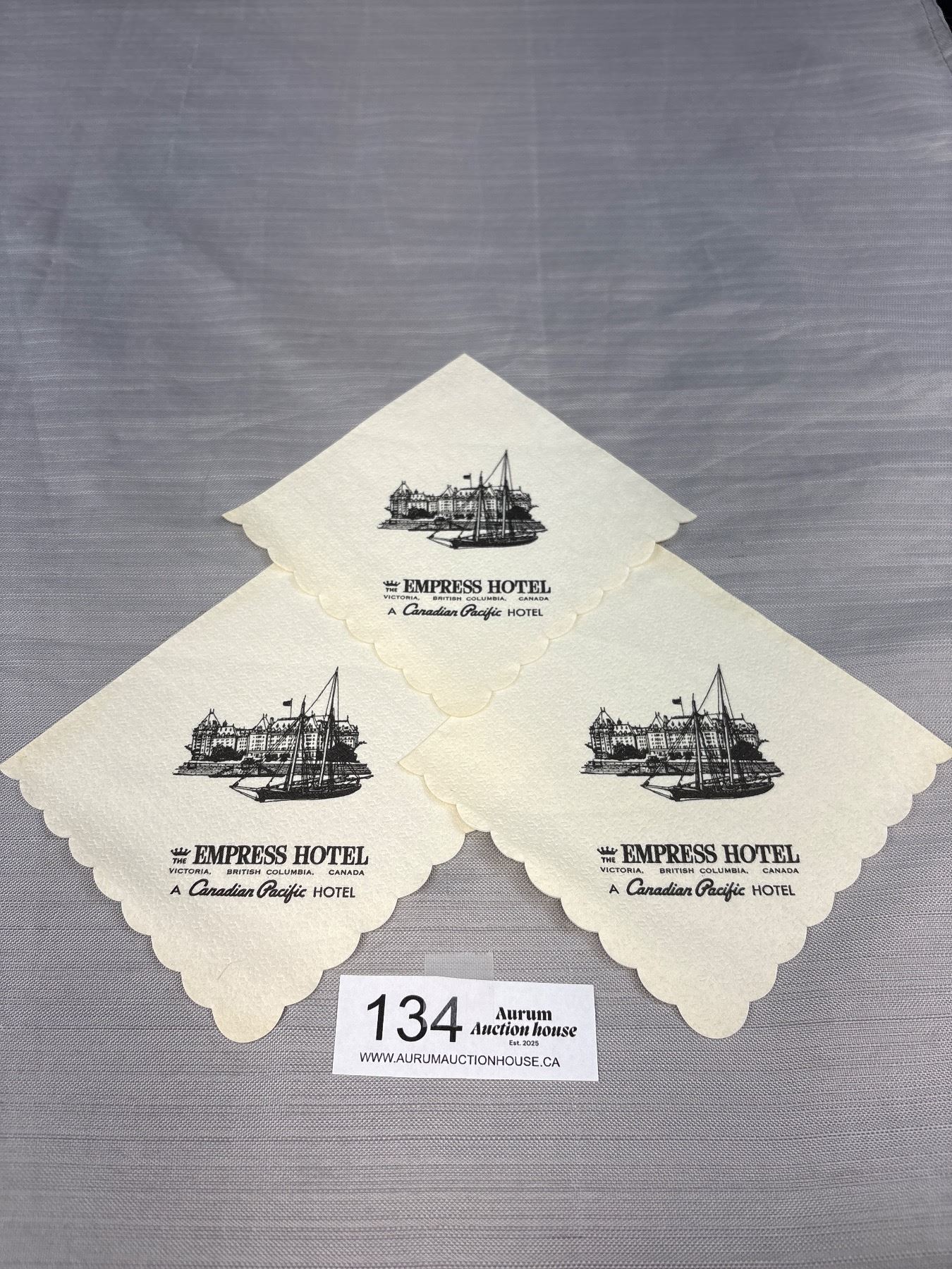 Lot 134 3 Vintaeg Empress Hotel (Canadian Pacific) Knapkins