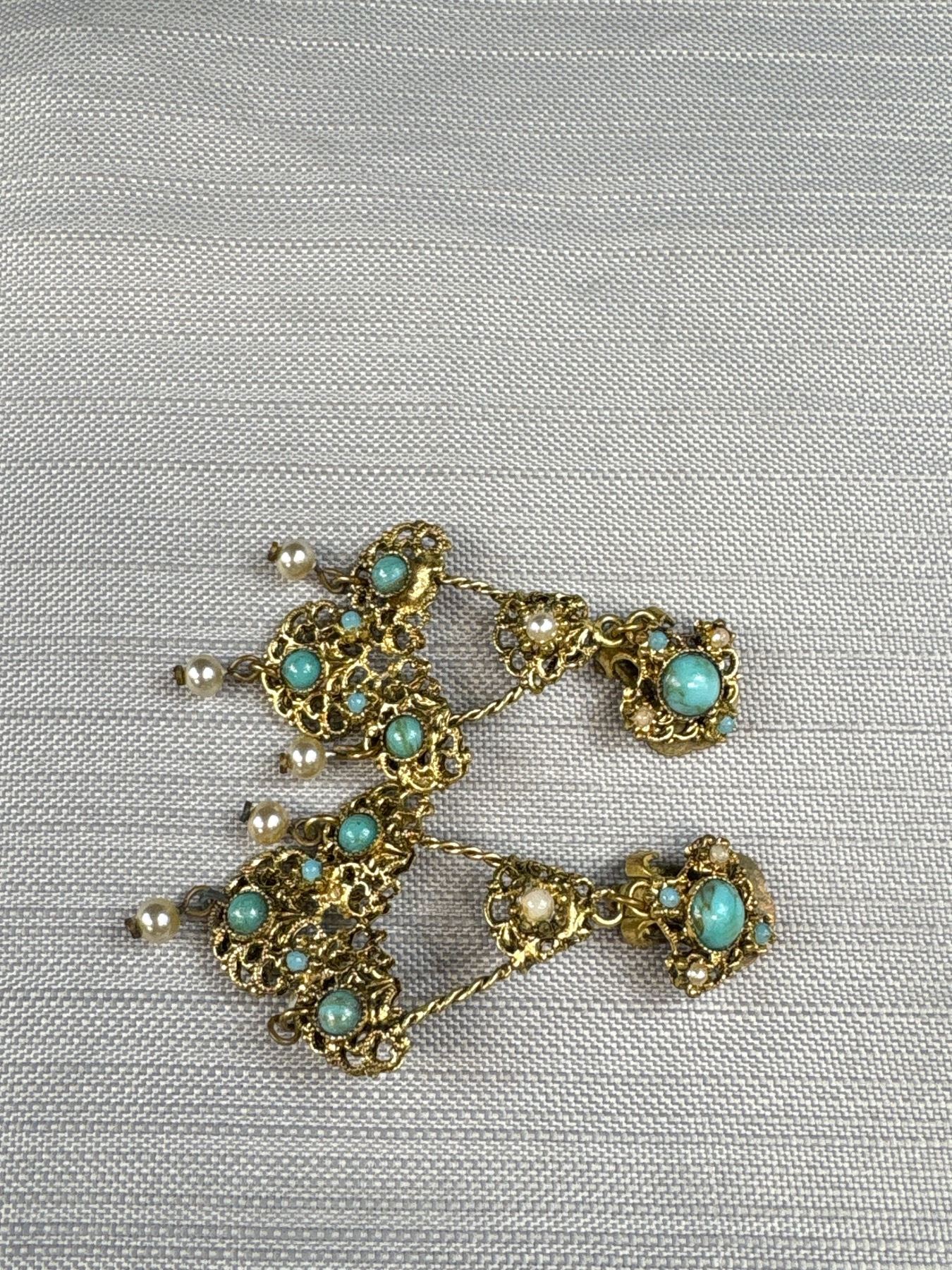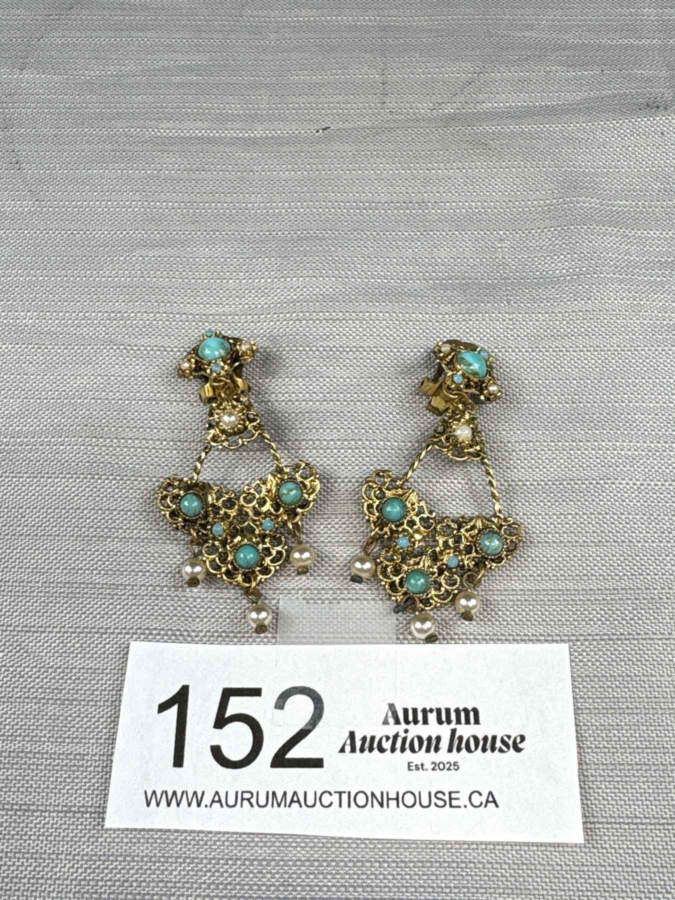 Lot 152 Very Nice Pair of Faux Pearl + Turqouise Earrings 1940