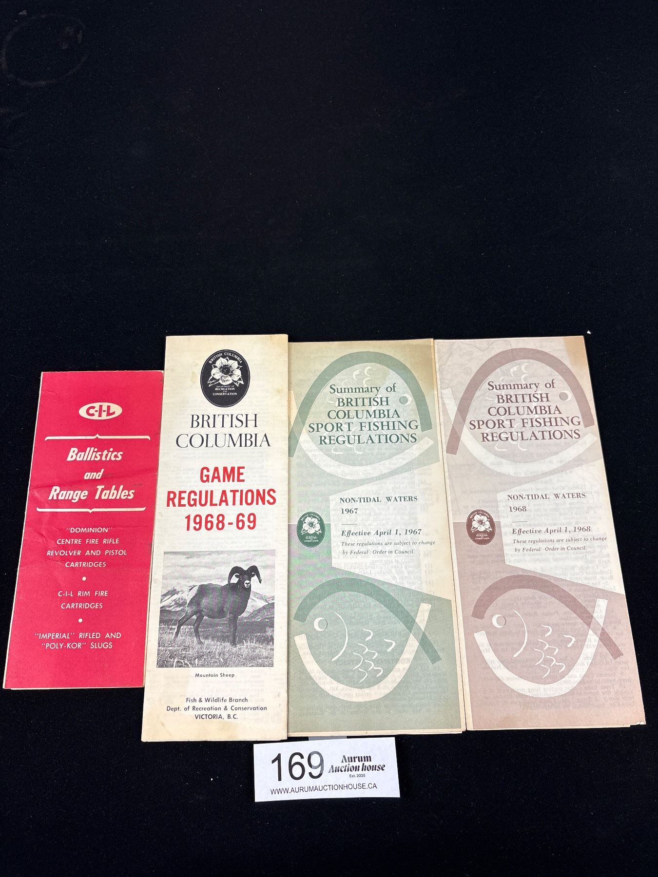 Lot 169 4 Vintage 1960's Pamphlets on Hunting, Fishing, + Ballistics in B.C.