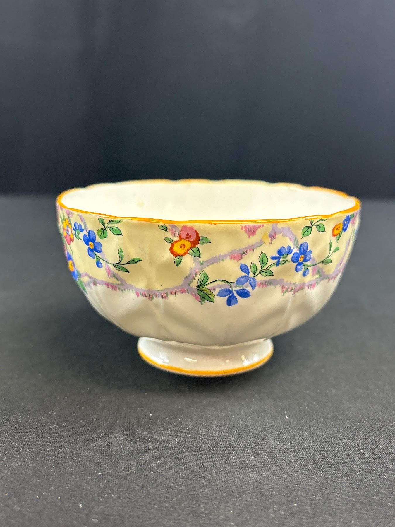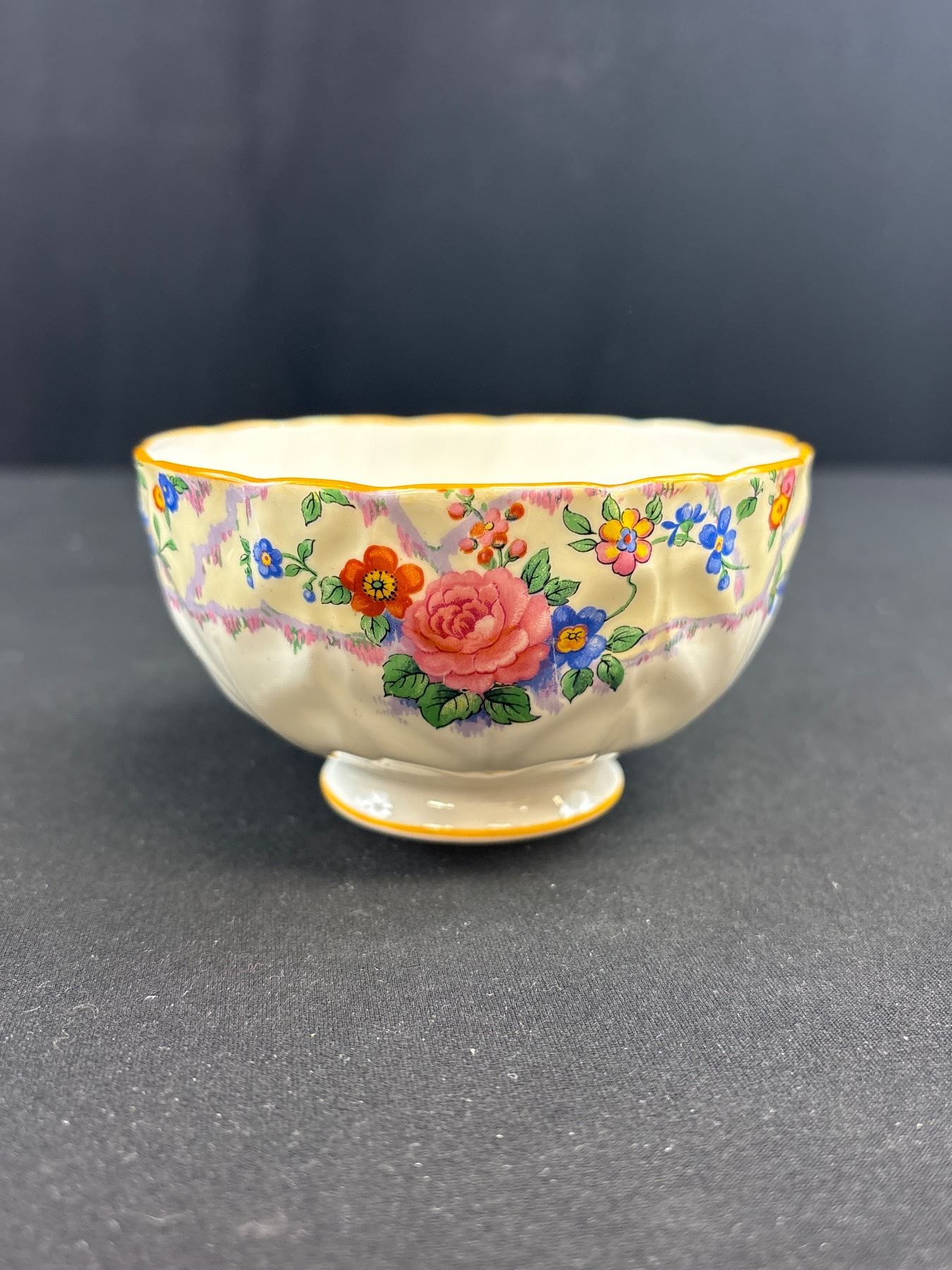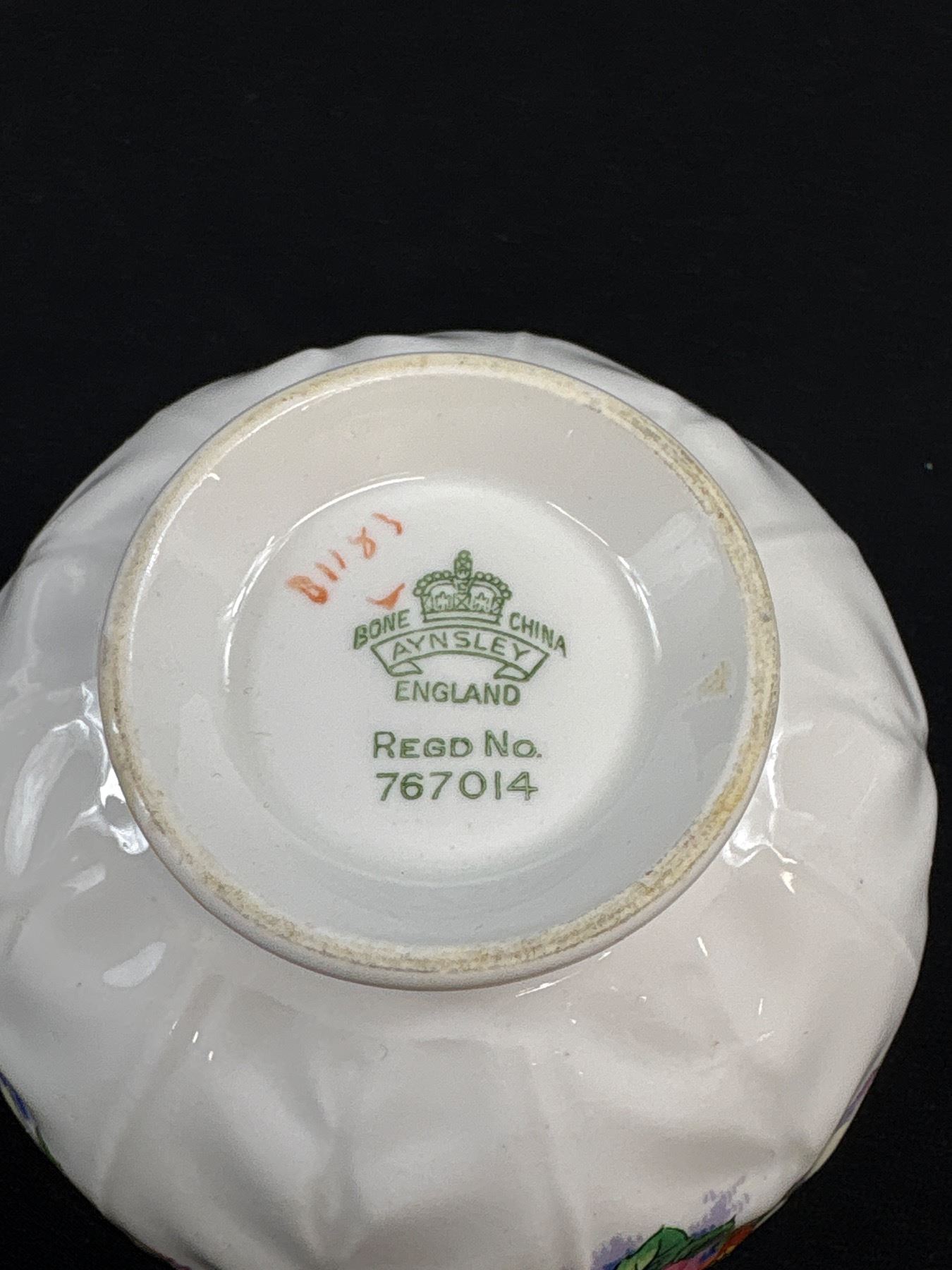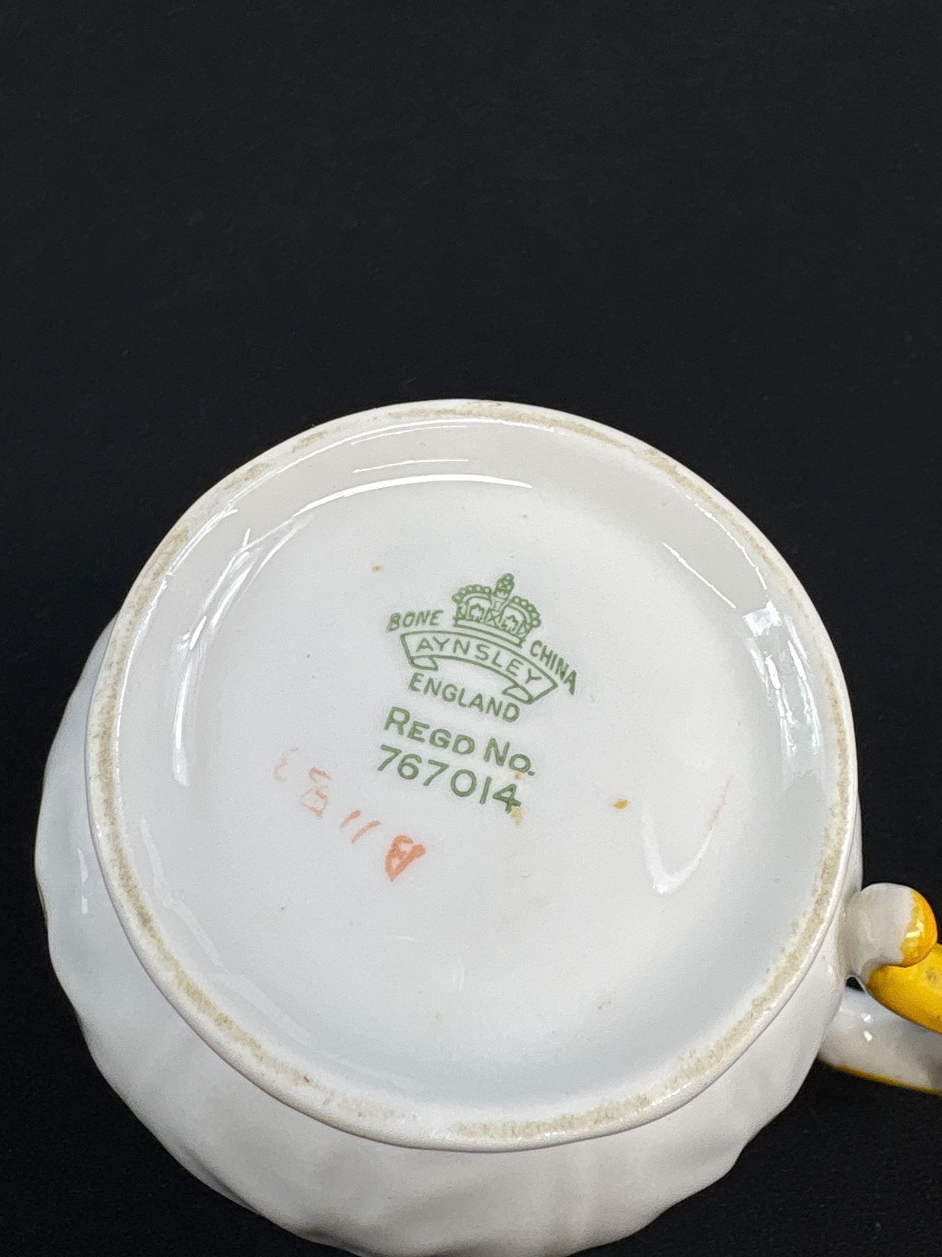 Lot 200 Very Nice Vintage Bone China Aynsley Cream and Sugar Set Yellow Band with Pink Roses and Wildflower