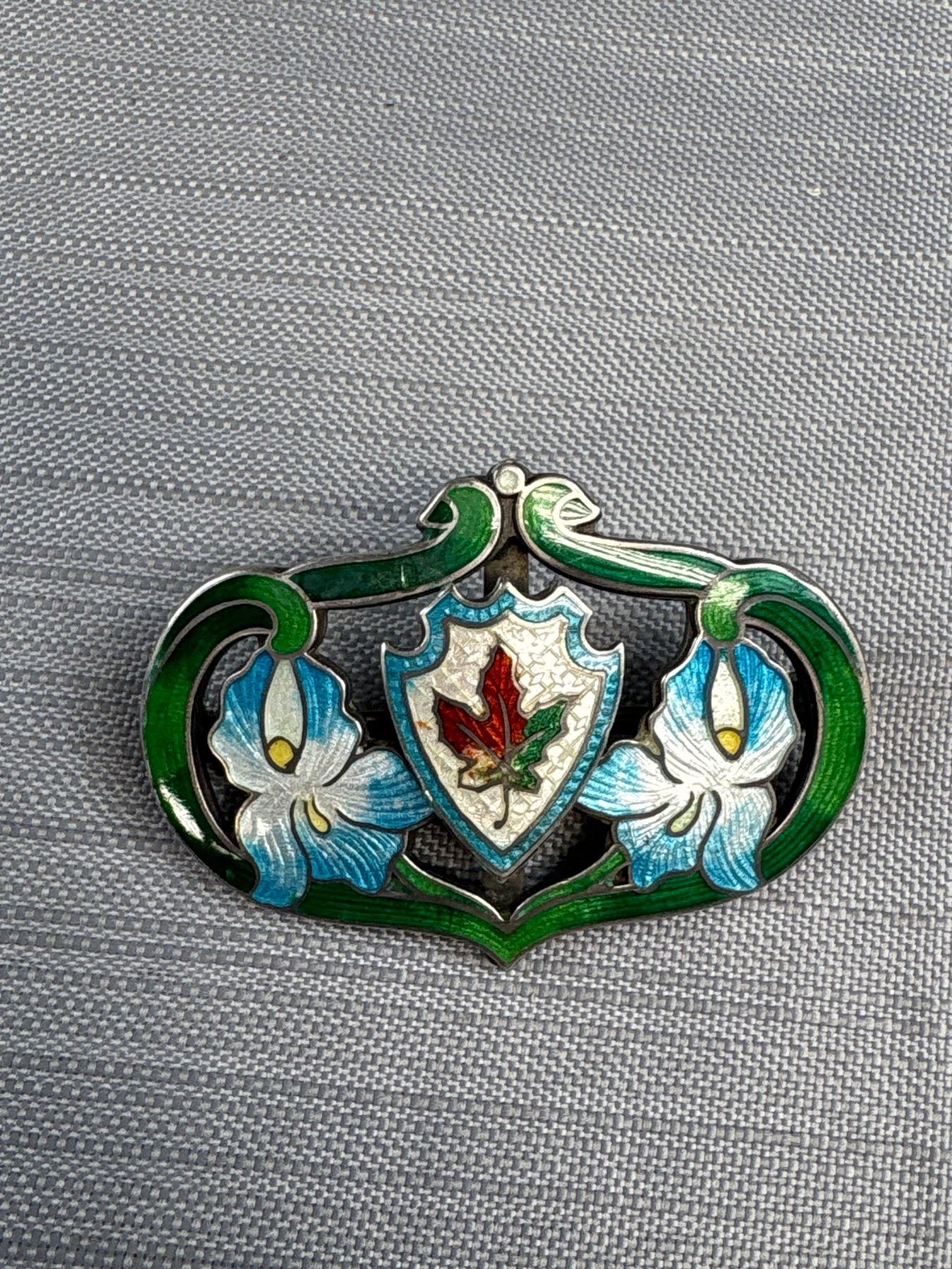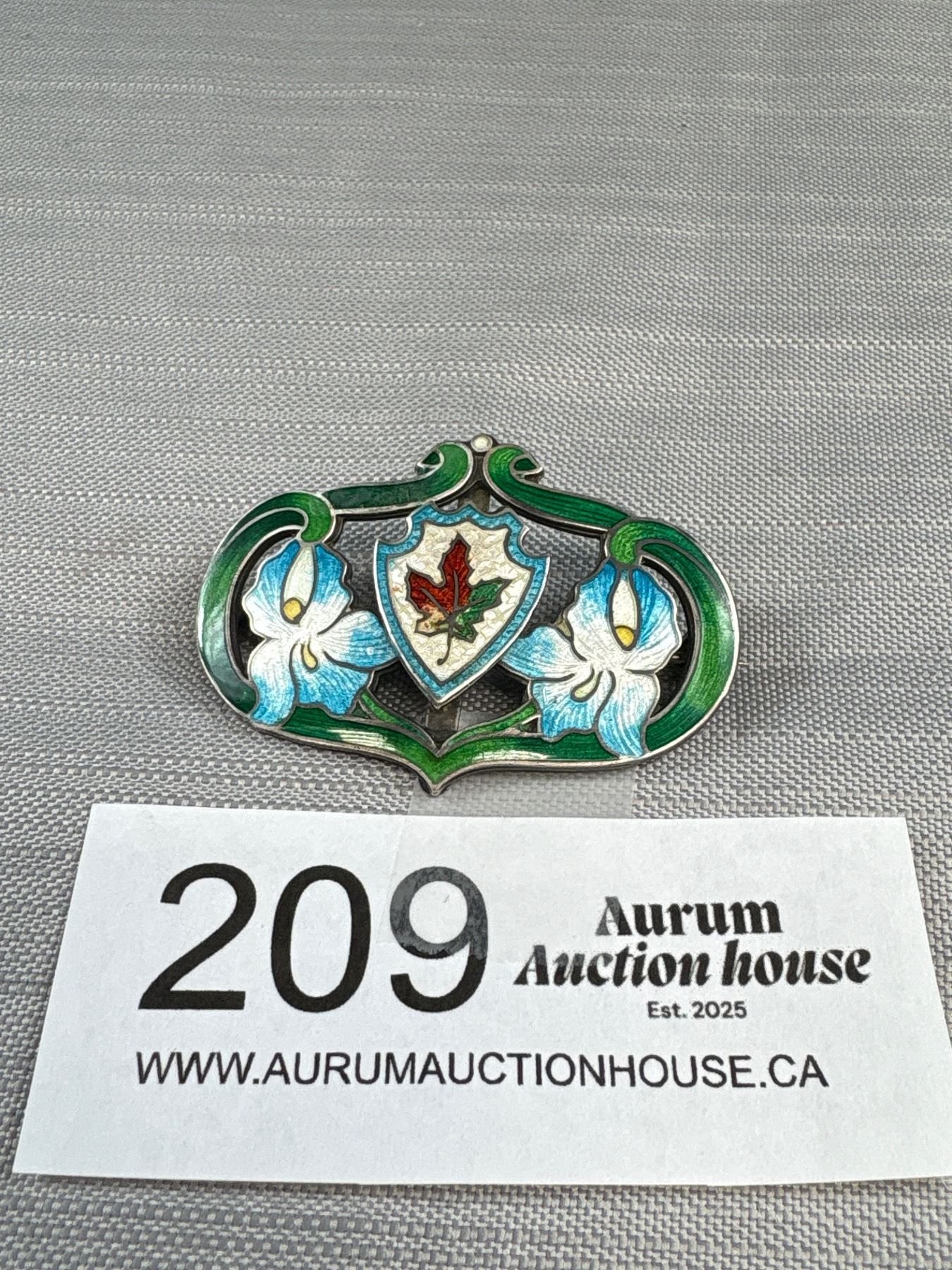 Lot 209 925 Sterling Silver Enamel Canada Brooch 2" Wide 1910-20