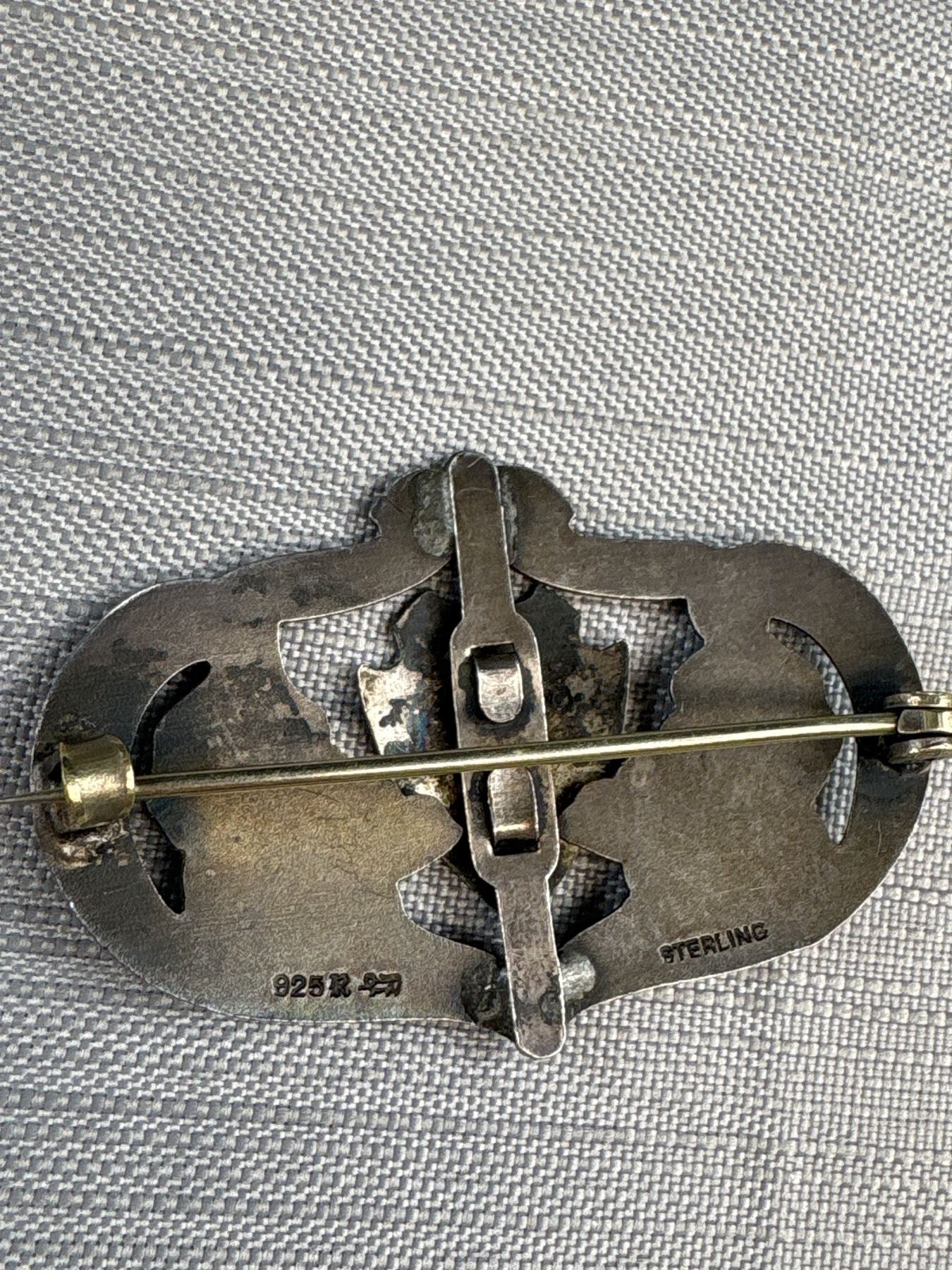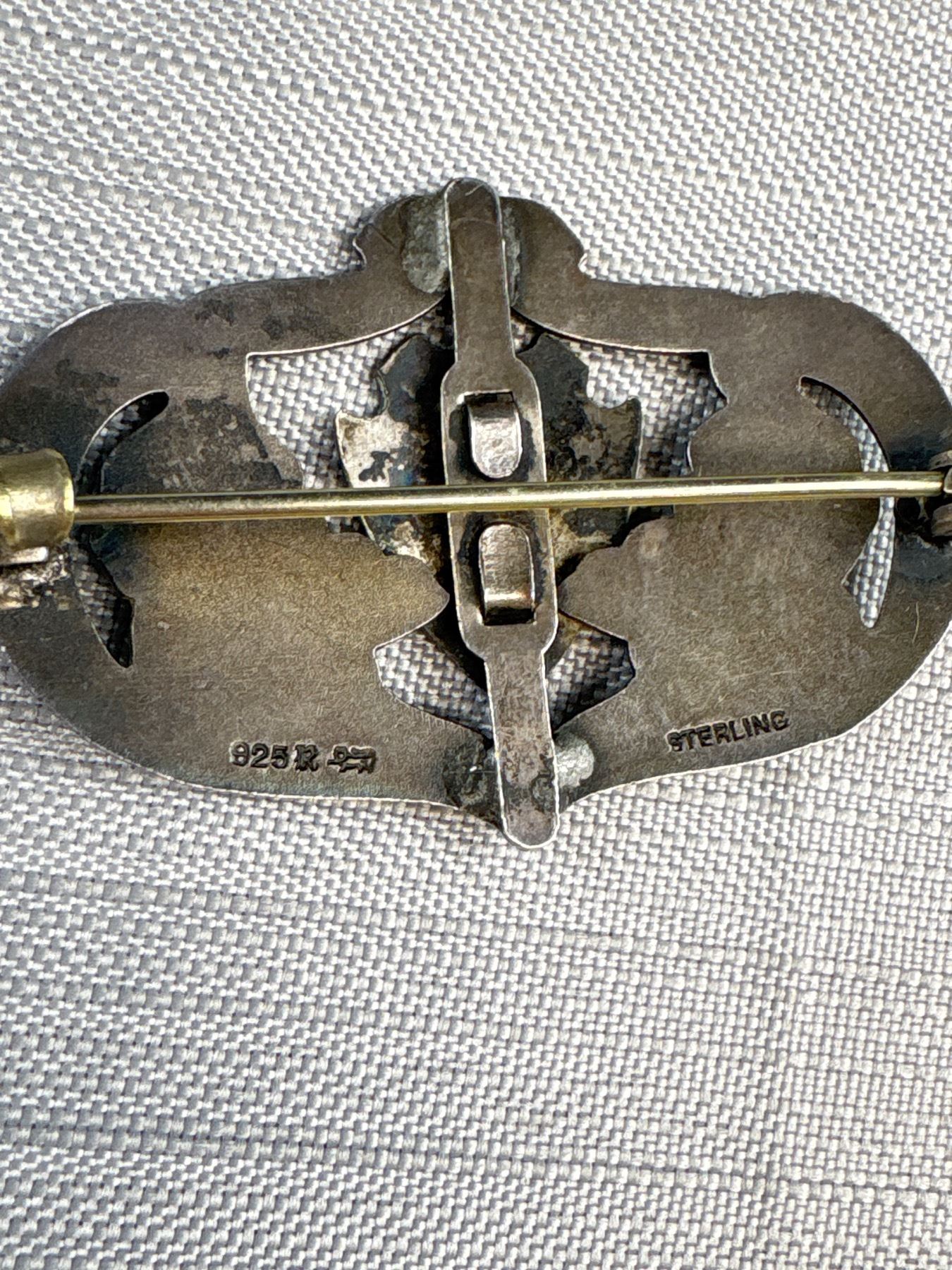 925 Sterling Silver Enamel Canada Brooch 2" Wide 1910-20