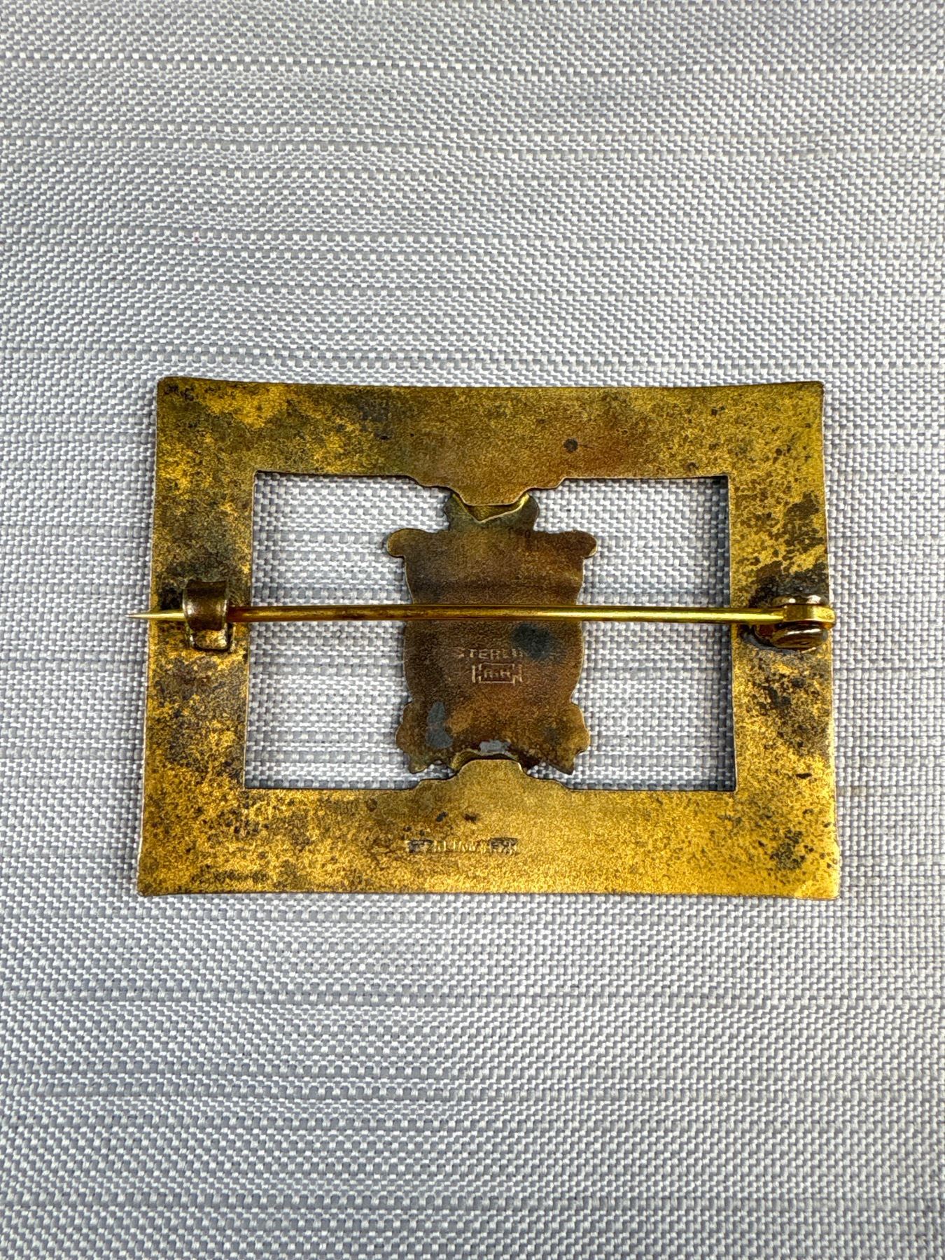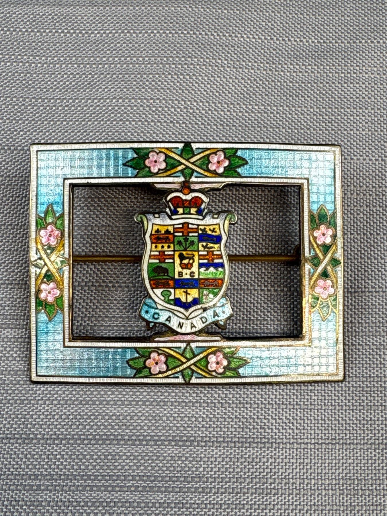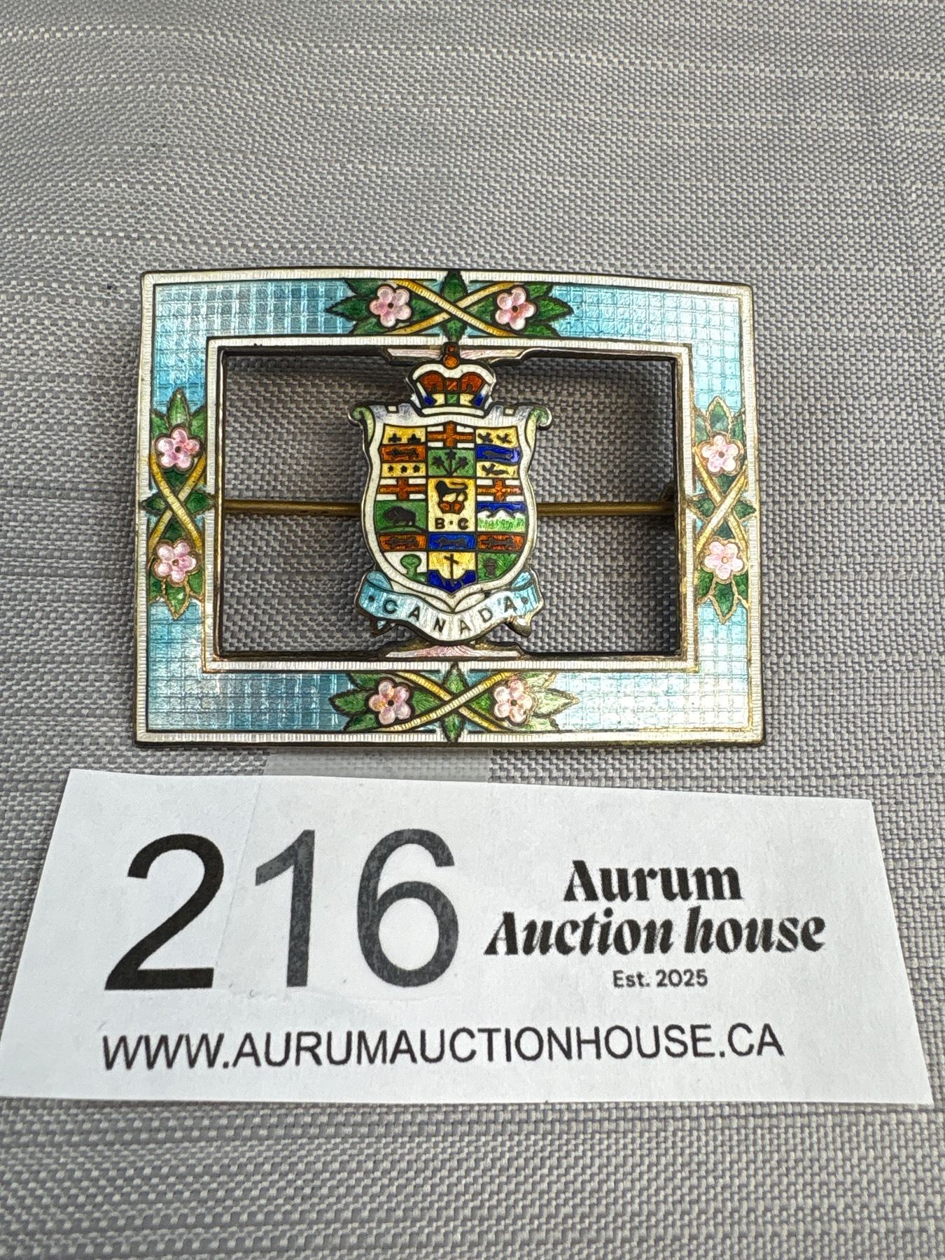 Lot 216 Antique Canada Enamel Sterling Silver Brooch 2 1/4" Wide
